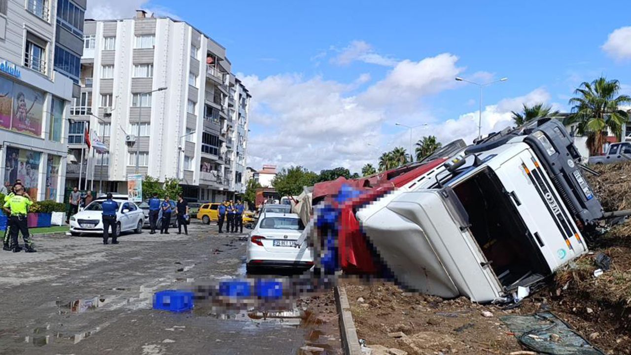Kontrolden çıkan tır yan yola uçtu: 2 araç ezildi