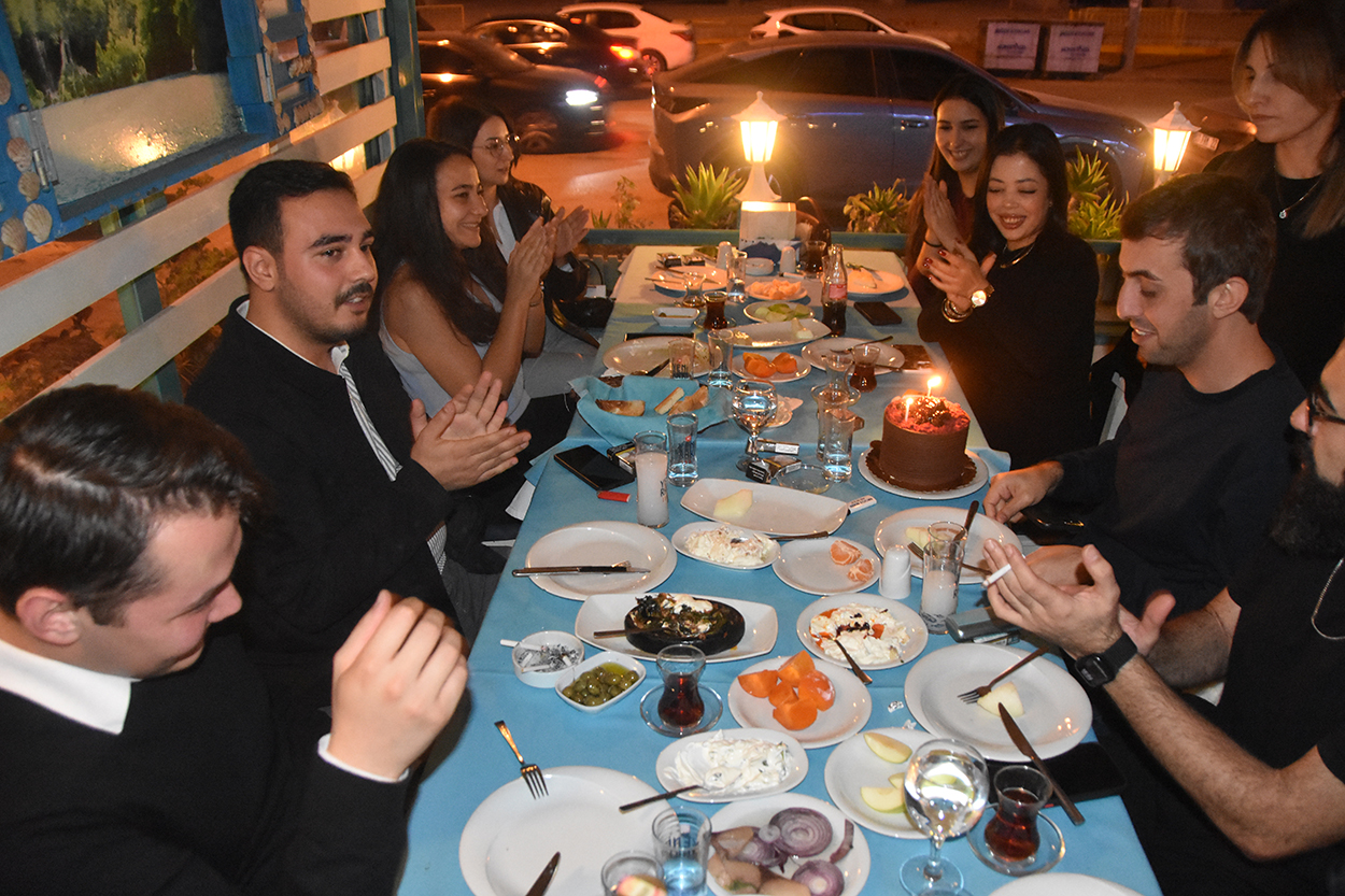 Kepez Belediye çalışanları, Konyaaltı Balıkçısı’nda keyifli bir buluşmada bir araya geldi. Batuhan Öztürk, Ayşe Torun, Merve Odabaşı, Buse Aslan ve arkadaşları, Ümitcan Aslan’ın doğum gününü kutlamak için özel bir organizasyon gerçekleştirdi.