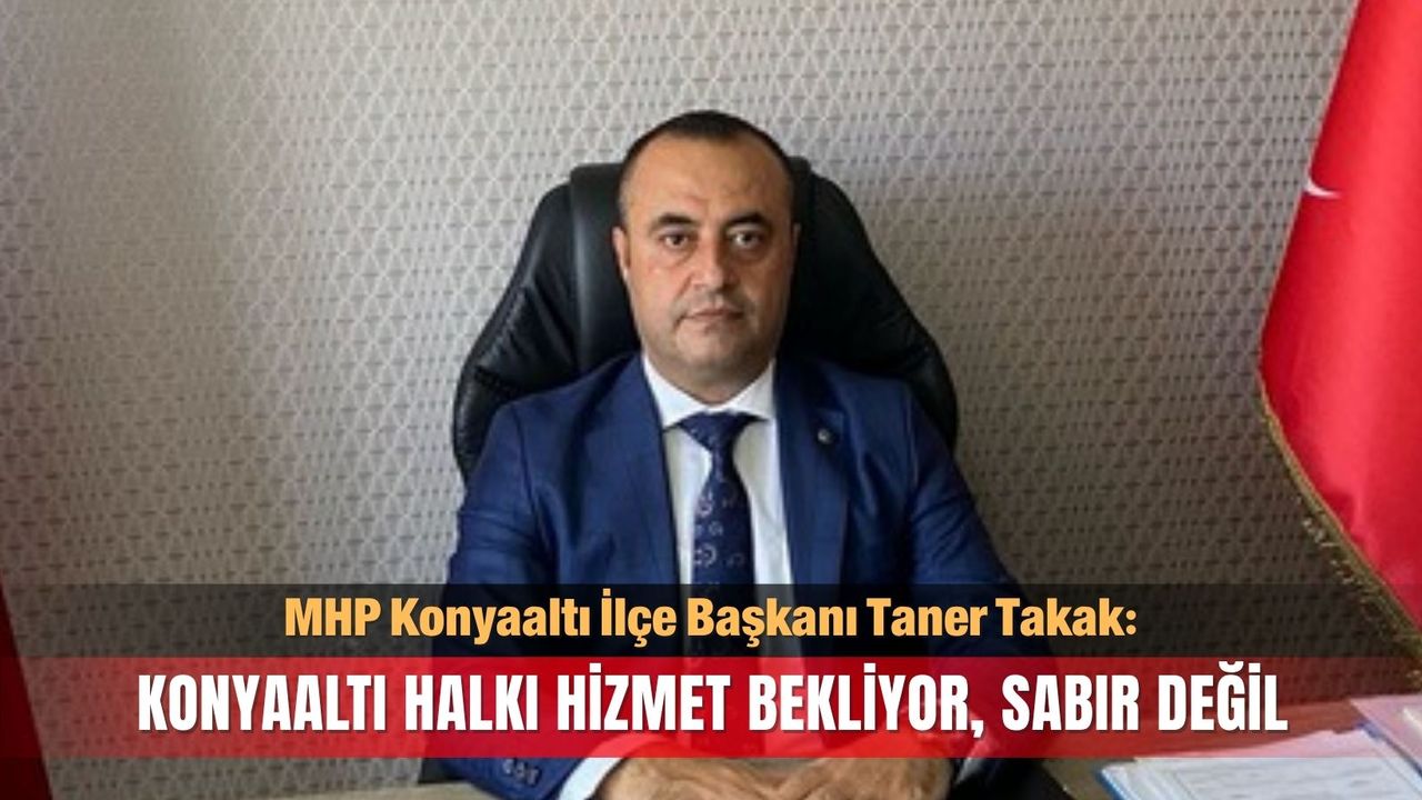 Takak, MHP Konyaaltı İlçe Başkanlığı olarak sürecin takipçisi olacaklarını, gerekirse hukuki yollarla da vatandaşların hakkını arayacaklarını ifade ederek “Konyaaltı halkı hizmet bekliyor, sabır değil” dedi.