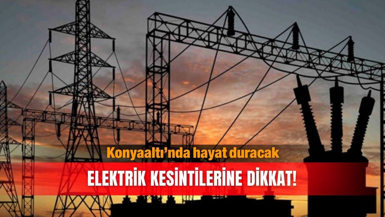 ANTALYA,KONYAALTI,MERKEZ AKKUYU 1001,MERKEZ AKKUYU 1006,MERKEZ AKKUYU Mah. ANADOLU Cd,MERKEZ ALTINKUM,MERKEZ ALTINKUM Mah. 430 Sk.,MERKEZ ALTINKUM Mah. 444 Sk.,MERKEZ GÜRSU 350,MERKEZ GÜRSU ANADOLU,MERKEZ GÜRSU Mah. 370 Sk.,MERKEZ GÜRSU Mah. 380 Sk.,MERKEZ MOLLA YUSUF 1270,MERKEZ MOLLA YUSUF 1424,MERKEZ MOLLA YUSUF Mah. 1270 Sk.,MERKEZ MOLLA YUSUF Mah. 1452 Sk.,MERKEZ SİTELER 1360,MERKEZ SİTELER Mah. 1362 Sk.,MERKEZ SİTELER Mah. UNCALI Cd,MERKEZ SİTELER ÜNİVERSİTE,MERKEZ ULUÇ,MERKEZ UNCALI,MERKEZ UNCALI Mah.,MERKEZ ÖĞRETMENEVLERİ bölgelerinde 14/04/2026 09:00:00 - 14/04/2026 16:00:00 saatleri arasında Yatırım Çalışması Sebebi ile İş Sağlığı ve Güvenliği’ni de gözeterek elektrik kesintisi yapılacaktır.