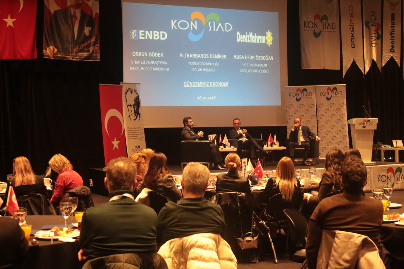 KONYSİAD’ın Ocak ayı toplantısı, Deniz Yatırım’ın üst düzey yöneticilerinin katılımıyla gerçekleştirildi. Moderatörlüğünü uzman isimlerin yaptığı panelde; stratejiden dış piyasalara, yatırım danışmanlığından reel sektörün beklentilerine kadar geniş bir yelpazede güncel ekonomik görünüm masaya yatırıldı. Toplantının açılış konuşmasını yapan KONYSİAD Başkanı İlhami Kaplan, sözlerine Antalya’da yaşanan sel felaketinden duyduğu üzüntüyü dile getirerek başladı. 2025 yılının dezenflasyon süreci nedeniyle reel sektör için oldukça zorlu geçtiğini belirten Kaplan, şu değerlendirmelerde bulundu: "Sıkı para politikası ve yüksek faiz oranları, özellikle KOBİ’lerimizi ciddi şekilde zorladı. İç talebin zayıfladığı ve büyümenin yavaşladığı bir yılı geride bıraktık. Ancak bugün enflasyonun yüzde 30 seviyelerine gerilemiş olması çok kritik bir kazanımdır. 2026 yılından beklentimiz; kontrollü faiz indirimleri ile başlayacak kademeli bir normalleşme ve temkinli bir toparlanma sürecidir."