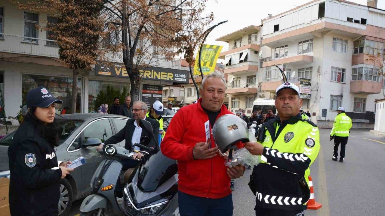 Korkuteli’nde artan motosiklet kazalarında yaralanma ve muhtemel can kaybının önüne geçmek için Korkuteli İlçe Emniyet Müdürlüğü ekipleri tarafından farkındalık uygulaması gerçekleştirildi. Uygulama kapsamında sürücülere kask takmanın önemi hatırlatılırken, kasksız trafiğe çıkan motosiklet sürücülerine ücretsiz kask dağıtıldı.