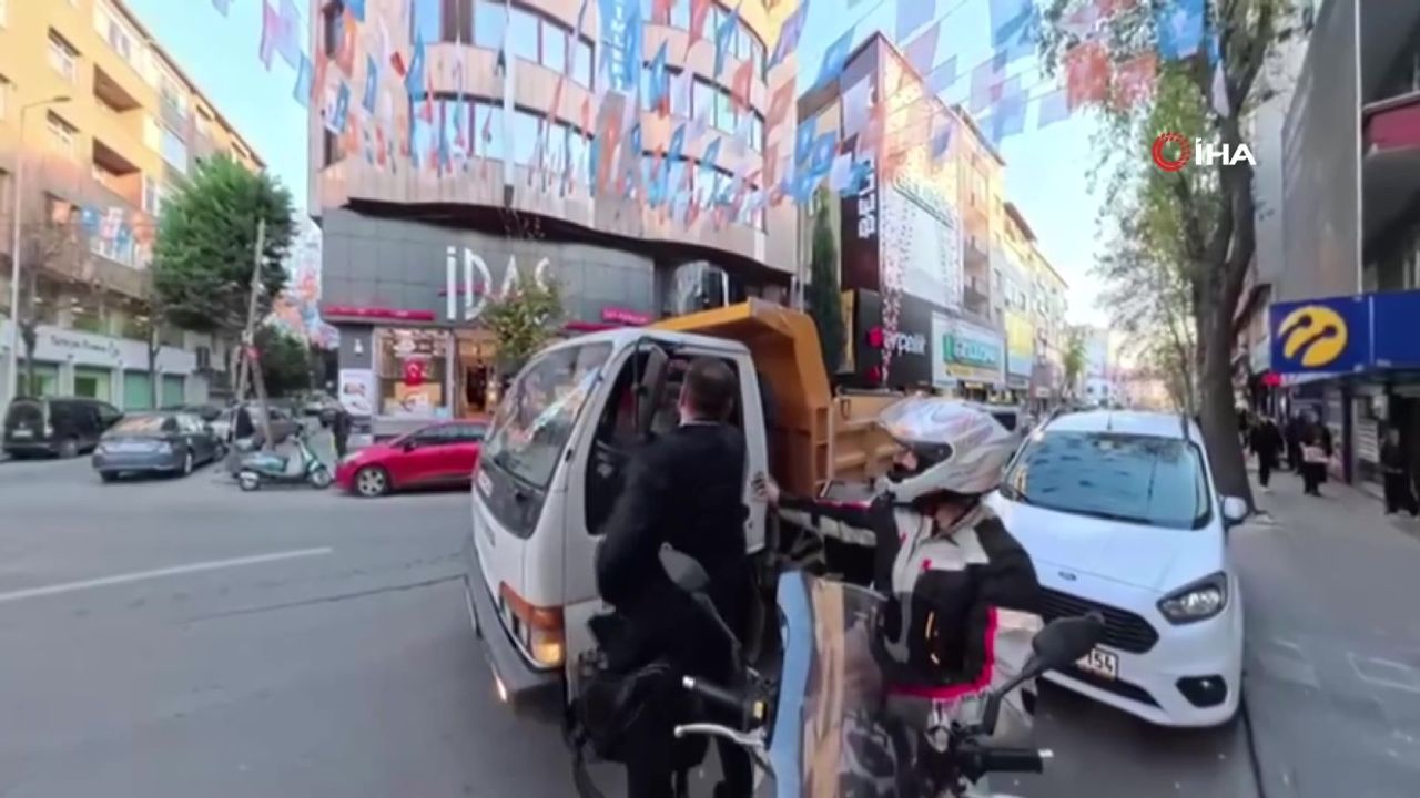 Kamyonet sürücüsüne çevredeki vatandaşlar da tepki gösterdi. Yaşanan olay bir motosiklet sürücüsünün kask kamerasına saniye saniye yansıdı.