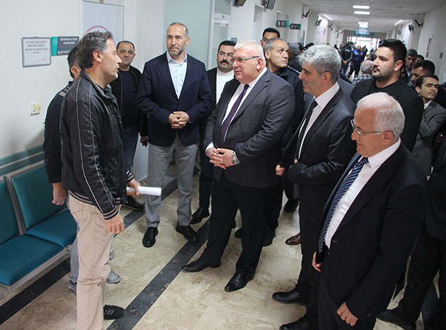 Kaymakam Bahadır Güneş, ilçe devlet hastanesini ziyaret etti. Diyaliz ünitesini gezen Kaymakam Güneş, daha sonra polikliniklerde hastalarla sohbet etti. Kapalı otopark, acil servis, yoğun bakım üniteleri ve yapımı devam eden kroner yoğun bakım servisini inceleyen Güneş, toplantı salonunda Başhekim Fatih Aladağ ve idarecilerden bilgi aldı. Başhekim Aladağ, 160 dönüm arazide 33 dönümü kapalı alanda kurulan hastanenin, 163 araçlık kapalı otoparkı bulunduğunu anlattı. Hastanenin 150 yatak kapasitesine sahip olduğunu dile getiren Aladağ, 38 uzman hekim, 17 pratisyen hekim, 343 sağlık personeli ve diğer alanlardaki 137 personelle hizmet verdiklerini söyledi. Aladağ, "Hastanemizde yıllık muayene ettiğimiz hasta sayısı 424 bin 651, acil bölümünde yıllık muayene ettiğimiz hasta sayısı 136 bin 775, diş hastanemizde yıllık muayene ettiğimiz hasta sayımız 25 bin 348, hastanemiz bünyesinde yıllık yatan hasta sayımız 9 bin 906, yoğun bakım ünitemizde yıllık yatan hasta sayımız 861 kişi, yeni doğan yoğun bakım servisinde yıllık tedavi sayımız ise 355. Hastanemizde yılda 6 bin 169 kişi ameliyat oldu. Gastroskopi olan hasta sayımız 263 ve kolonoskopi olan hasta sayımız ise 260. 12 yoğun bakım yatağımız bulunmaktadır. Batı Antalya bölgesinde ilk olacak olan kroner anjiyo bakım merkezimizdeki çalışmalar aralıksız sürüyor" dedi.