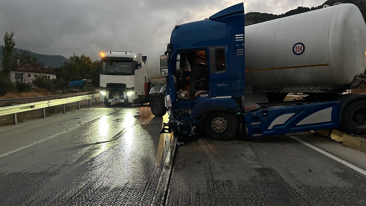 Burdur'un Çeltikçi ilçesinde bariyerlere çarpan tır makasladı, kara yolu kısa süreliğine trafiğe kapandı.