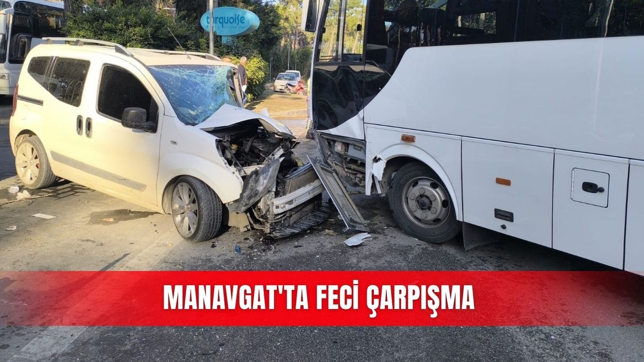 Kaza, Manavgat ilçesi Sorgun Mahallesi oteller bölgesinde meydana geldi. Edinilen bilgiye göre, Side'den Titreyengöl istikametine seyir halindeki İlker V.'nin kullandığı 06 DV 6020 plakalı hafif ticari araç karşı yönden gelip yolun solunda bulunan otele dönen Talip A.'nın kullandığı 07 C 74656 plakalı servis otobüsüyle çarpıştı. Kaza anı güvenlik kamerasına saniye saniyesine yansırken, hurdaya dönen hafif ticari araç sürücüsü yaralandı. Kazada yaralanan 06 DV 6020 plakalı araç sürücüsü İlker V. 112 sağlık ekiplerinin olay yerindeki müdahalesinin ardından ambulansla hastaneye kaldırıldı.
