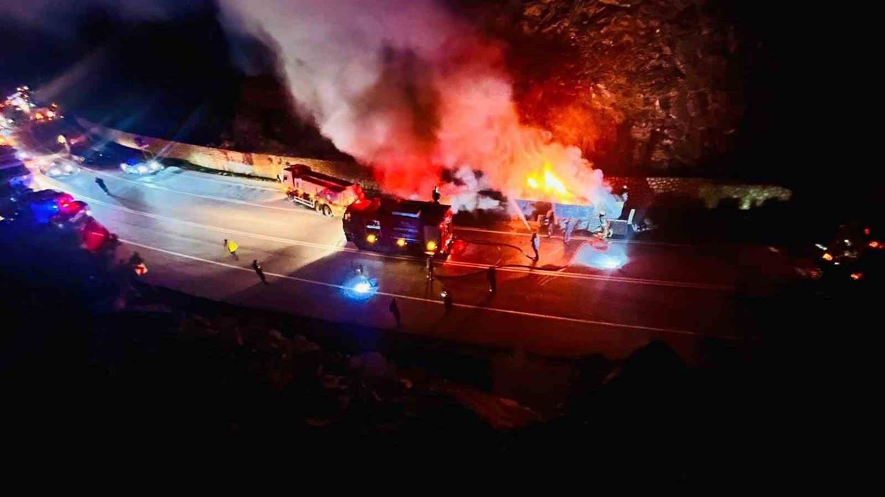 Olay Akseki-Manavgat D-695 Karayolu'nda yaşandı. Edinilen bilgiye göre, Akseki istikametinden Manavgat yönüne seyir halindeki Hüseyin S.'nin kullandığı 42 KY 670 çekici ve 42 ALY 933 dorse plakalı sunta yüklü tır, Manavgat'a bağlı Gençler Mahallesi sınırlarına geldiğinde dorsesinden alevler yükselmeye başladı. Tır dorseden ayrılarak uzaklaştırılırken ihbar üzerine olay yerine Antalya Büyükşehir Belediyesi İtfaiyesi Manavgat ve Akseki birimlerine bağlı 4 adet itfaiye ile Manavgat İlçe Jandarma Komutanlığı Merkez Jandarma Karakolu ve Bölge Trafik İstasyon Amirliği ekipleri sevk edildi. Yangın sırasında Akseki-Manavgat yolu güvenlik nedeniyle çift yönlü olarak trafiğe kapatıldı.