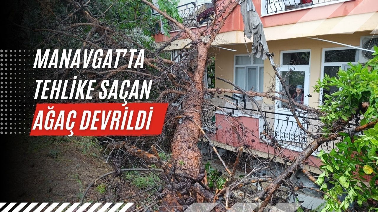 Manavgat Kasaplar Mahallesi 3636 sokakta meydana gelen olayda, sokak üzerinde bulunan boş arazide bulunan kurumuş çam ağacı şirdetli rüzgar ve yağmura daha fazla dayanamayarak yan tarafında bulunan 4 katlı apartmanın üzerine devrildi. Şans eseri olayda can ve mal kaybı yaşanmazken, bir bina sakini ağaç devrildiği sırada balkonda çocuğunun oynadığını belirtti.