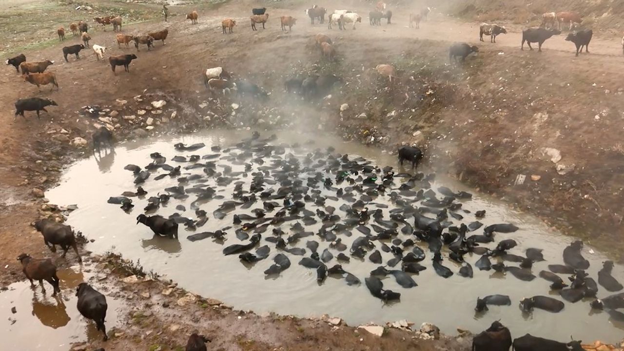 Dronla kaydedilen görüntülerde, kaplıcada yoğun şekilde bulunan mandalar ve çevredeki diğer büyükbaş hayvanlar adeta Afrika savanlarını andıran bir manzara oluşturdu. Bölge halkı, her yıl tekrarlanan bu doğal ve sıra dışı manzaranın artık Budaklı’nın simgelerinden biri haline geldiğini belirtiyor.