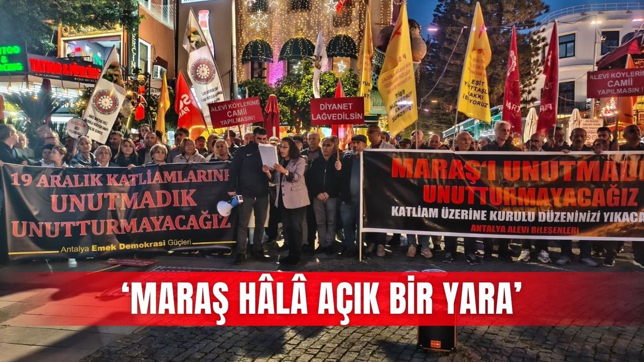 Maraş Katliamı’nın 47’nci yılında Antalya’da Alevi Bileşenleri ile Emek ve Demokrasi Güçleri Attalos Meydanı’nda bir araya gelerek katliamı lanetledi. Topluluk adına basın açıklamasını Hasibe Akpınar okudu. Akpınar, Maraş Katliamı’nın yalnızca geçmişte yaşanmış bir trajedi olmadığını vurgulayarak, “Adalet sağlanmadığı sürece bu karanlık tarih bugünü ve geleceği tehdit etmeye devam ediyor” dedi. Hasibe Akpınar açıklamasında, 19-26 Aralık 1978 tarihleri arasında Maraş’ta yaşanan katliamda yüzlerce Alevinin yaşamını yitirdiğini, binlercesinin yaralandığını ve on binlerce insanın zorunlu göçe maruz bırakıldığını hatırlattı. Alevilere ait mahallelerin sistematik biçimde hedef alındığını belirten Akpınar, “Evler, iş yerleri ve tarım arazileri yağmalandı, yakıldı. Maraş’ta yaşananlar münferit değil; planlı, örgütlü ve inanç temelli bir saldırıdır” ifadelerini kullandı.