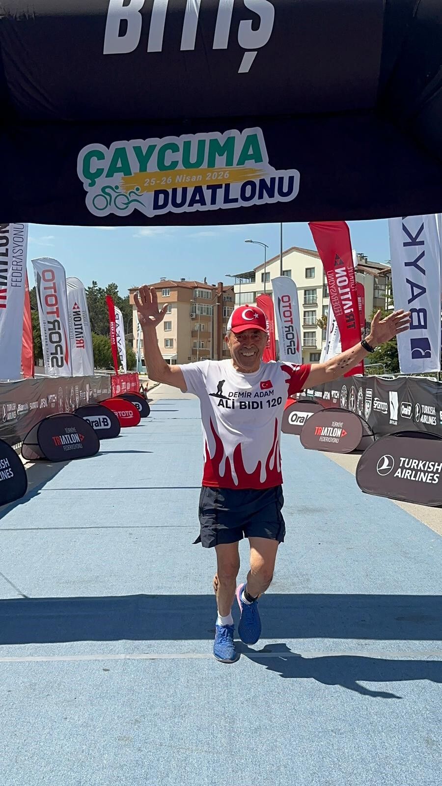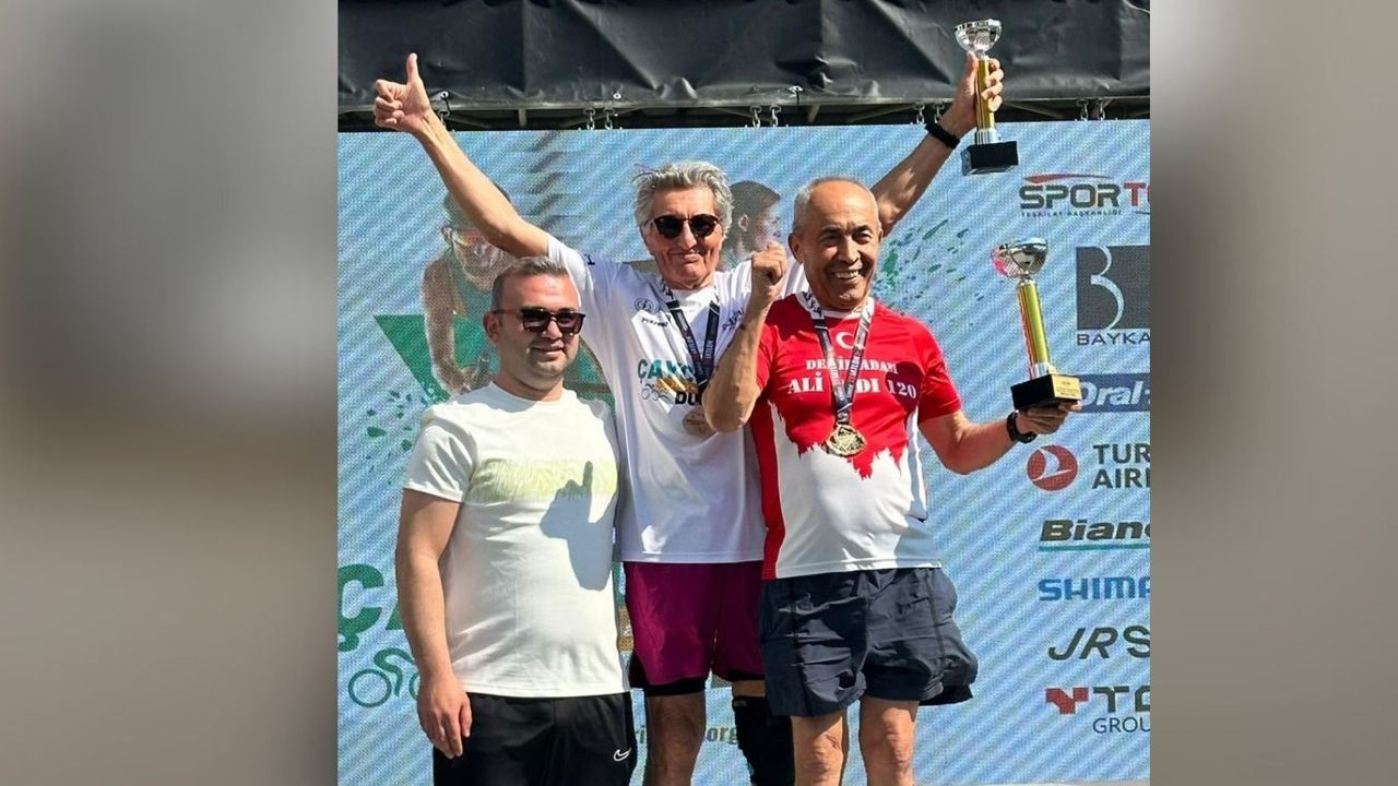 Zonguldak'ın Çaycuma ilçesinde düzenlenen 2026 Duatlonu, yoğun katılım ve renkli görüntüler eşliğinde tamamlandı. Yarışmaya Antalya'dan katılan iş insanı ve milli sporcu Ali Bıdı, 75-79 yaş kategorisinde rakiplerini geride bırakarak birinci oldu. 'Demir Adam' lakabıyla tanınan Bıdı, bu derecesiyle birlikte son üç duatlon yarışında topladığı puanlarla Türkiye Kupası elde etti. İki şirket yöneten ve yoğun iş temposuna rağmen spor disiplininden ödün vermeyen Ali Bıdı, ileri yaşına rağmen sergilediği performansla dikkat çekti. Bıdı, ödülünü Çaycuma Kaymakamı Adem Kaya'nın elinden alırken, organizasyonda Zonguldak Valisi Osman Hacıbektaşoğlu ile AK Parti Zonguldak Milletvekili Ahmet Çolakoğlu da sporcularla bir araya gelerek başarı dileklerini iletti. Organizasyonda elde ettiği derecelerle öne çıkan Ali Bıdı, hem Çaycuma Duatlonu'nda hem de sezon genelinde önemli bir başarıya imza attı.