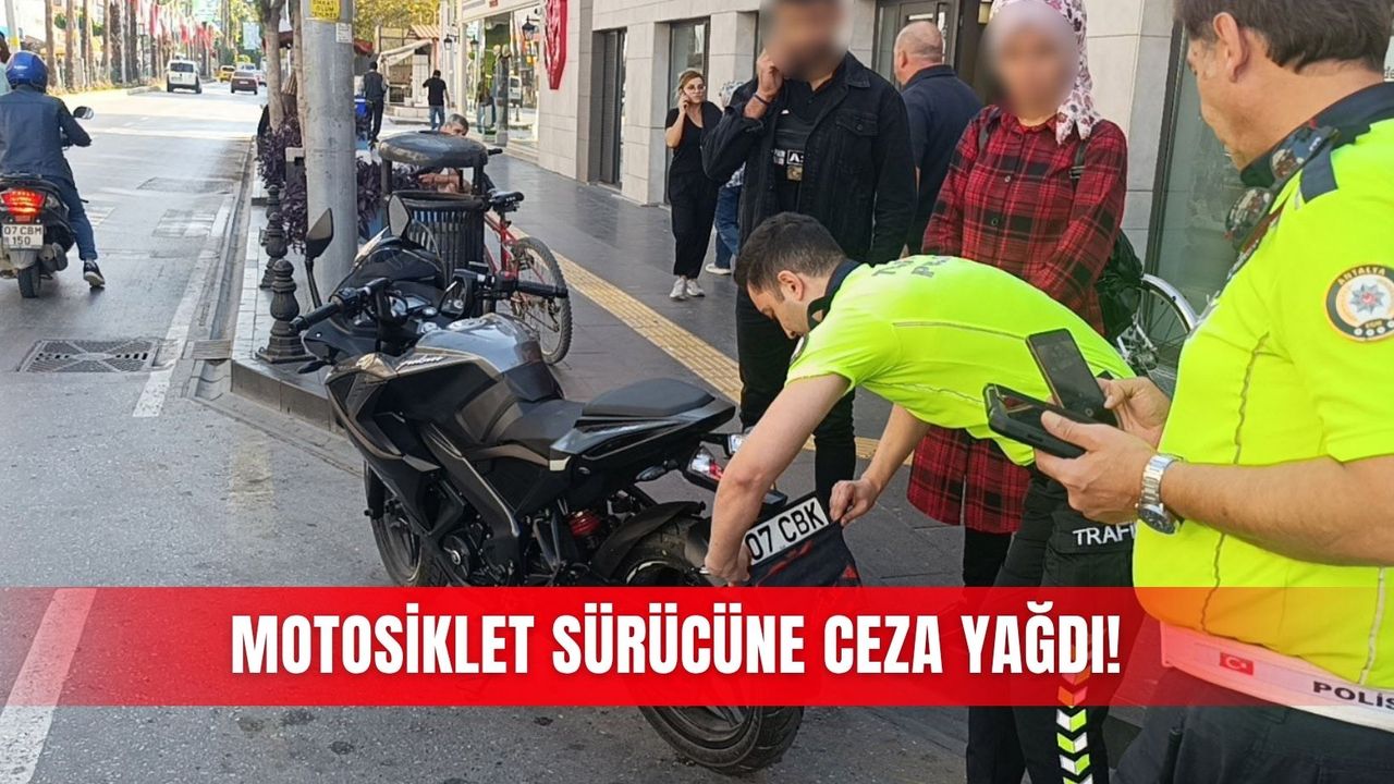 Manavgat ilçesi Antalya Caddesi’nde devriye görevi ifa eden Manavgat İlçe Emniyet Müdürlüğü Trafik Denetleme Büro Amirliği ekipleri, seyir halindeki plakası okunamayacak şekilde bandana ile kapatılmış motosikleti durdurdu. Trafik ekiplerinin yaptığı kontrolde motosikleti kullanan Erdem C.’nin sürücü belgesinin olmadığı, kaskı yanında olmasına rağmen takmadığı ve aynaları kapattığı belirlendi. Motosiklet sürücüsü ve motosiklet sahibine toplam 43 bin 149 TL para cezası uygulandı.