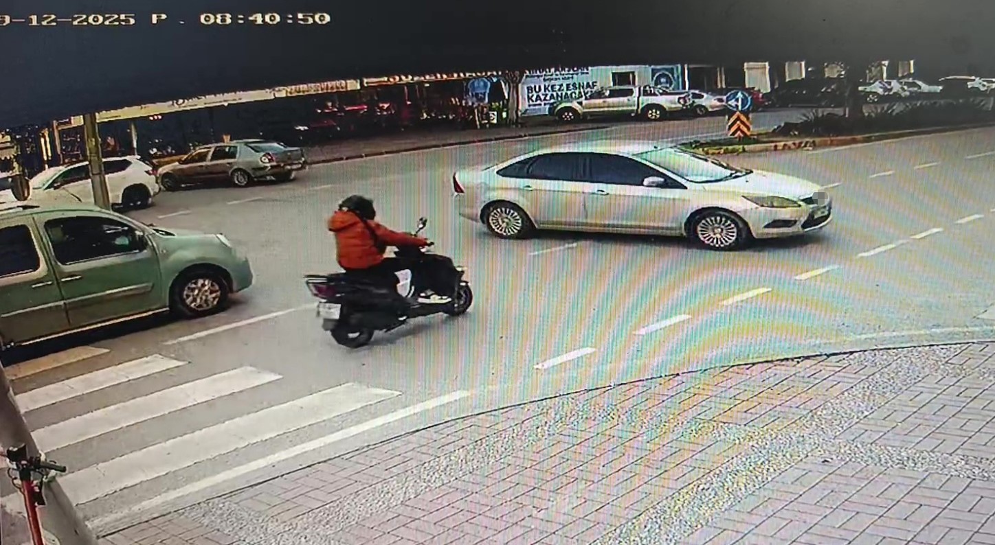 Kaza anı ise bir iş yerinin güvenlik kamerasına saniye saniye yansıdı. Görüntülerde, motosiklet sürücüsü genç kadının karşıya geçen otomobili fark etmeyerek çarptığı ve ardından yere düştüğü görüldü.