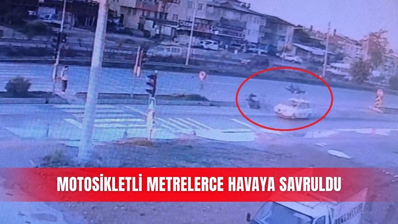 Güvenlik kamerasına saniye saniyesine yansıyan kazada, çarpışmanın şiddetiyle havaya fırlayan motorlu bisiklet sürücüsü yaralandı. Yaralı, 112 sağlık ekiplerinin olay yerindeki müdahalesinin ardından ambulansla hastaneye götürüldü.