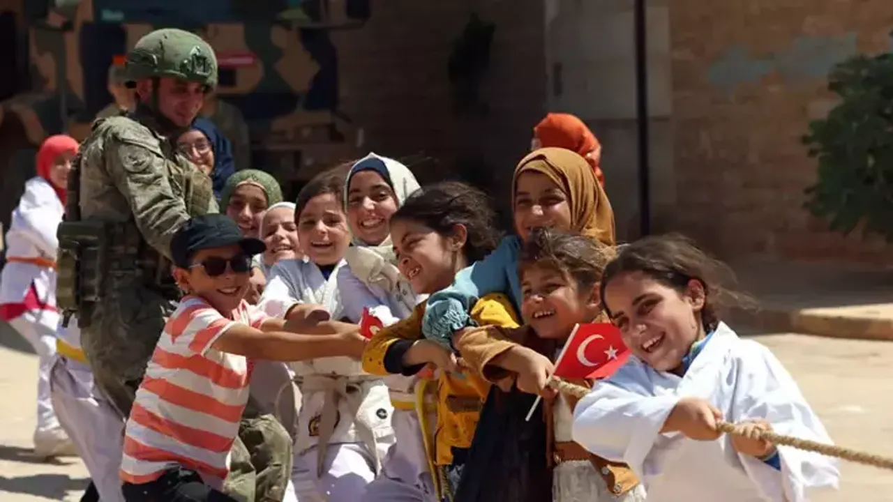 Bakanlığın sanal medya hesabından 'Günün fotoğrafı' etiketi ile paylaşılan fotoğrafta çocuklarla halat çekme oyunu oynayan Mehmetçik yer aldı. Fotoğrafa ilişkin yapılan açıklamada "Güç silahta değildir. Asıl güç, masumların size duyduğu güvendir" denildi.