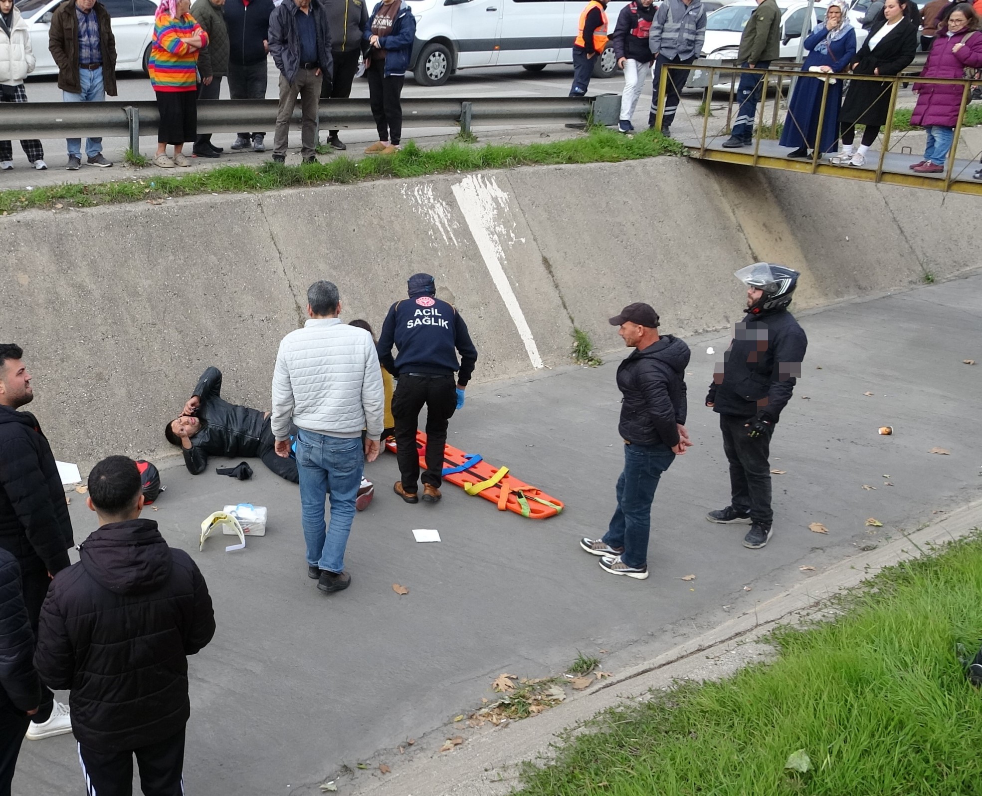 Çarpmanın şiddetiyle motosiklet ve üzerinde ki sürücü yola savrulurken motosiklet sürücüsü genç bariyerleri aşarak yol kenarında bulunan yaklaşık 3 metre derinliğindeki yağmur suyu tahliye kanalına düştü. Kazayı gören çevredeki vatandaşların ve diğer sürücüler yaralı gencin yardımına koşarken kazanın 112 Acil Çağrı Merkezi'ne bildirilmesi üzerine olay yerine polis, itfaiye ve sağlık ekipleri sevk edildi. Verilen adrese gelen sağlık ekipleri kanal içerisinde bulunan yaralı gence ilk müdahaleyi yaparken, Mücahit Ç. vatandaşlar ve itfaiye ekiplerinin yardımıyla kanaldan çıkartılarak ambulansa hastaneye kaldırıldı.