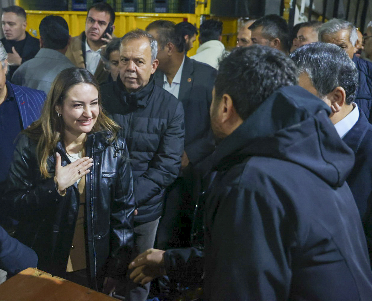 Antalya Büyükşehir Belediyesi Başkan Vekili Büşra Özdemir, CHP Tarım ve Orman Bakanlığı’ndan Sorumlu Genel Başkan Yardımcısı Erhan Adem, CHP İl Başkanı Nail Kamacı, belediye başkanları, ilçe başkanları ve çok sayıda partili ile birlikte sabahın ilk ışıklarıyla birlikte Antalya Toptancı Hal esnafını ziyaret etti. Ziyarette Antalya Toptancı Hali Yaş Sebze ve Meyve Komisyoncular Dernek Başkanı Nevzat Akcan ve Tüccarlar Derneği Başkanı Adalet Yandık da, Başkan Vekili Büşra Özdemir ve Genel Başkan Yardımcısı Erhan Adem’e eşlik ederek, tek tek hal esnafını gezdi.
