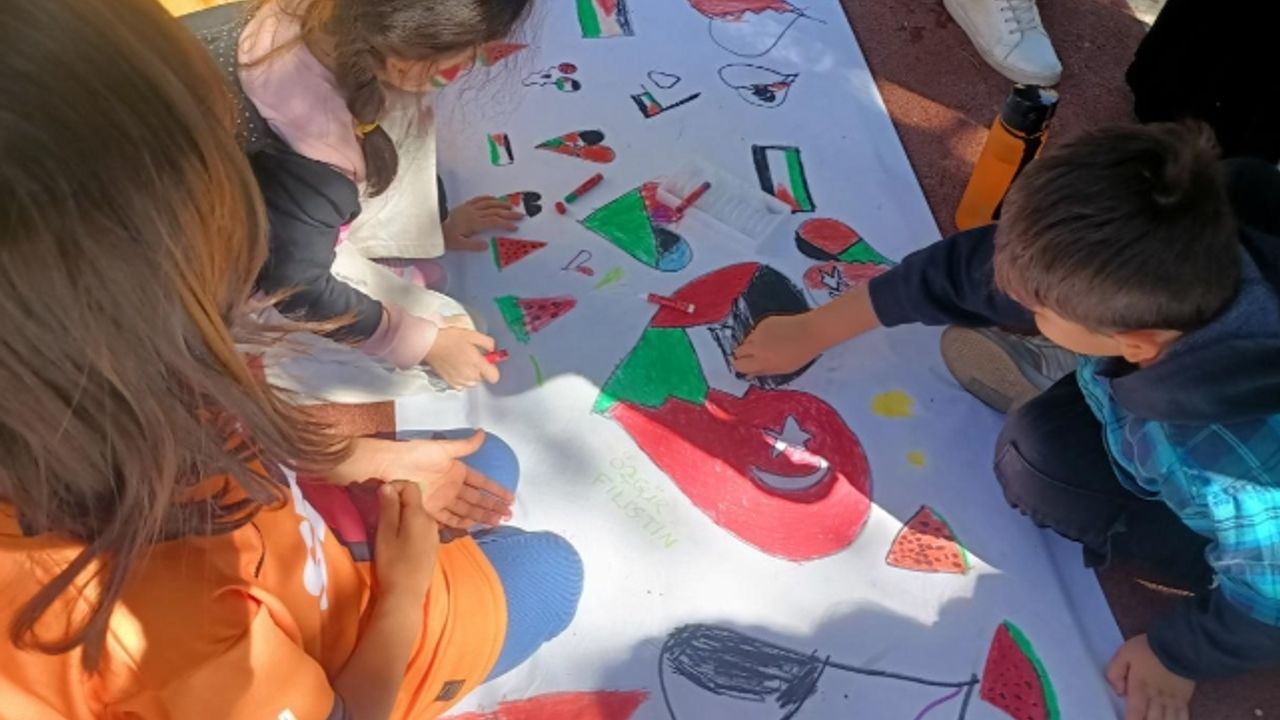 Iğdır'a kadar uzanan etkinlikte çocuklar Millet Bahçesi'nde bir araya geldi. Çocuklar, Gazze'de hayalleri yok edilen çocukların sesini duyurmak için resim çizdi.