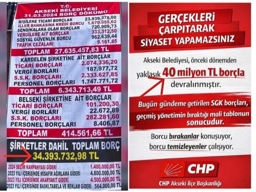 Akseki’de belediyenin mali durumu üzerinden başlayan polemik giderek derinleşiyor. CHP yönetimindeki Akseki Belediyesi’nin belediye şirketine ait 3,7 milyon TL SGK borcunun ortaya çıkmasının ardından, önceki dönem AK Parti’li Akseki Belediye Başkanı İbrahim Özkan’ın açıklamalarıyla tartışma yeniden alevlendi. Özkan, hem borç rakamlarındaki çelişkilere hem de arsa satışlarına dikkat çekerek, kamuoyunun yanıltıldığını savundu.