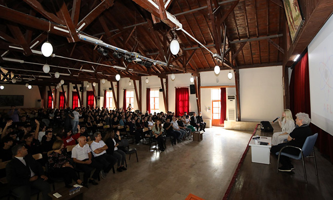 Aksu Fen Lisesi Konferans Salonu'nda gerçekleştirilen söyleşiye, Akdeniz Üniversitesi Rektörü Prof. Dr. Özlenen Özkan ve Organ Nakli Merkezi Müdürü Prof. Dr. Ömer Özkan'ın yanı sıra, Aksu Fen Lisesi Müdürü Dr. Mustafa Köseoğlu, müdür yardımcıları Bayram Aydemir, Banu İşler, İbrahim Ateş, öğretmenler ve öğrenciler katıldı.
