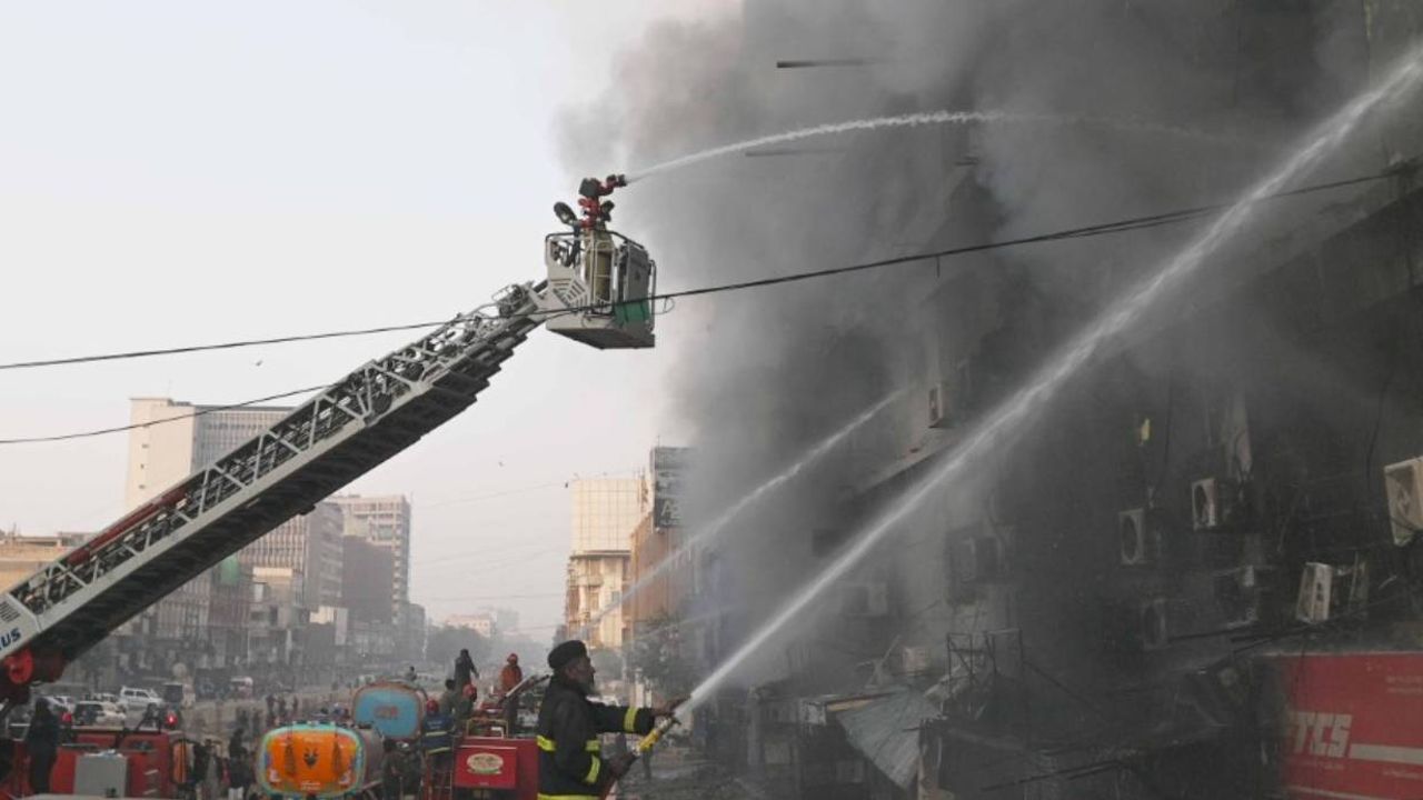 Pakistan'da cumartesi akşam saatlerinde çıkan yangın, bir çiçekçide başlamış ve 18 saatten fazla süredir söndürülememişti. Yaklaşık bin 200 mağazanın bulunduğu AVM'nin bir kısmı yangın nedeniyle çökmüş, zemin kattaki tüm dükkan ve depolar alevlere teslim olmuştu.