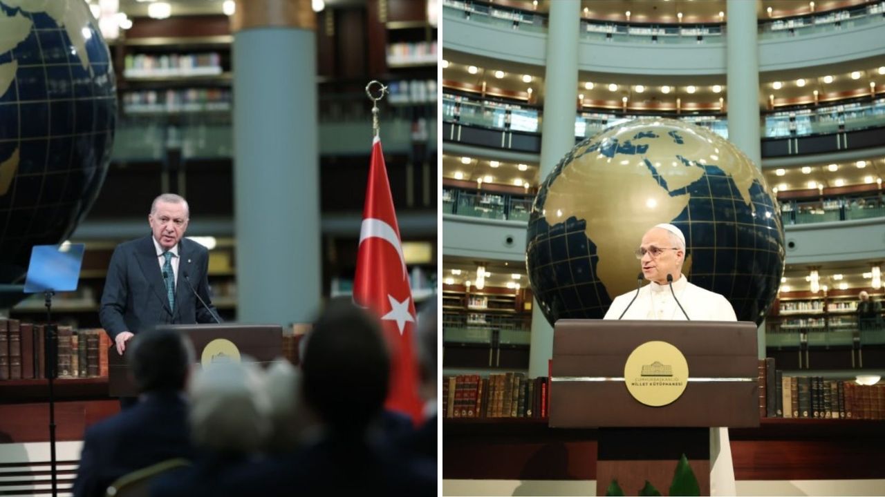Papa 14. Leo’yu ve heyetini Türkiye’de misafir etmekten büyük bir memnuniyet duyduğunu belirten Cumhurbaşkanı Erdoğan," Katolik dünyasının ruhani lideri, Vatikan Devlet Başkanı Papa 14. Leo, ülkemizdeki diplomatik misyonların değerli temsilcileri, çok kıymetli misafirler, hanımefendiler, beyefendiler; sizleri şahsım, ülkem ve milletim adına en kalbi duygularımla, hürmetle selamlıyorum. Bir kez de sizlerin huzurunda kıymetli misafirimiz ve heyetine ülkemize hoş geldiniz diyorum" dedi.