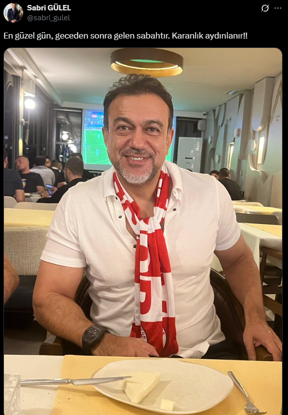 Antalyaspor’un eski başkanlarından Sabri Gülel, Başakşehir karşılaşmasının ardından X hesabından yaptığı kısa ama anlamlı paylaşımla dikkatleri üzerine çekti. “En güzel gün, geceden sonra gelen sabahtır. Karanlık aydınlanır!” ifadelerini kullanan Gülel’in bu sözleri, sadece bir temenni değil, camia içinde güçlü bir mesaj olarak yorumlandı. Kırmızı-beyazlıların farklı mağlup olduğu maçın hemen sonrasında yapılan bu paylaşım, Antalyaspor’un zor günlerinde yeniden umut ışığı yaktı. Yönetimsel krizlerin ve sportif düşüşün yaşandığı bir dönemde gelen bu ifadeler, birçok taraftar tarafından “yeni bir dönemin habercisi” şeklinde değerlendirildi.