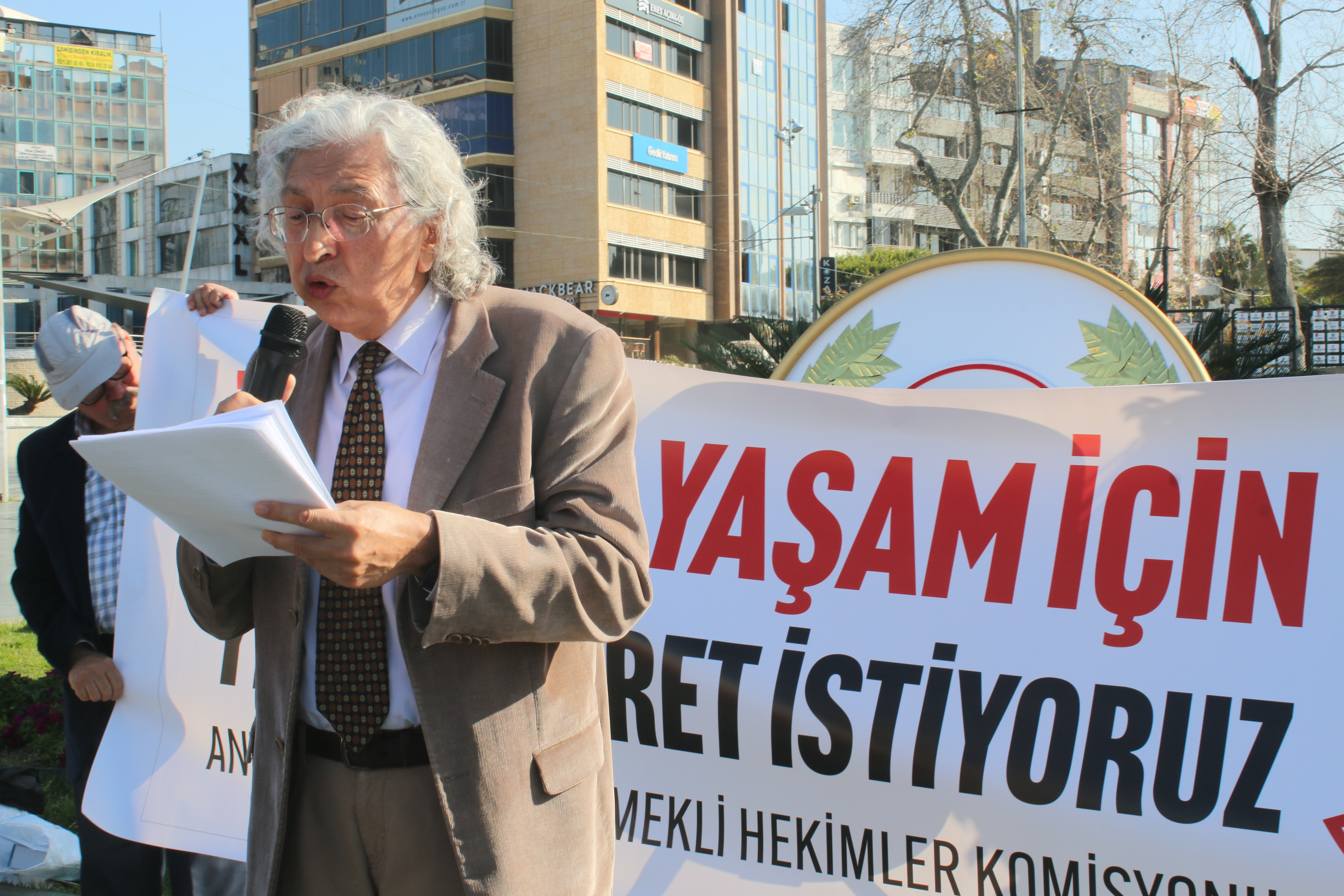 "Biz hekimler uzun eğitimlerinin ardından yıllarca ülkemizin sağlık sorunlarını çözmek için uğraşmışken emekli olduktan sonra kendi sağlık sorunlarıyla uğraşmak zorunda kaldıkları yaşa kadar çalışmak zorunda kalmaktayız. Emekli maaşlarının, asgari ücretin ne kadar yetersiz düzeyde olduğunun bilincindeyiz ve aslında sizlerle aynı kaderi paylaşıyoruz. Bizler de emeğimizin karşılığını almamaktayız, hele emekli olunca sizler gibi hak etmediğimiz emekli maaşlarıyla yaşamlarımızı sürdürmektedir. Bu nedenle çalışırken aldığımız ücretin maaş olarak tanımlanmasını, emekli maaşımızın çalışırken aldığımız ücret üzerinden tanımlanmasını, kıdem tazminatımızın emekli olduğumuzdaki ücret üzerinden hesaplanmasını, emeklilik yaşına gelen bir hekimin insanca bir yaşam sürdürebilmesi için ek iş yapmak zorunda kalmamasını, ek iş yapmak zorunda kalanlarında emekli maaşlarından kesinti yapılmamasını, talep ediyor ve saygı ile öncelikle halkımıza, kamuoyuna ve parlamentoda görev yapmakta olan meslektaşlarımıza duyuruyoruz."