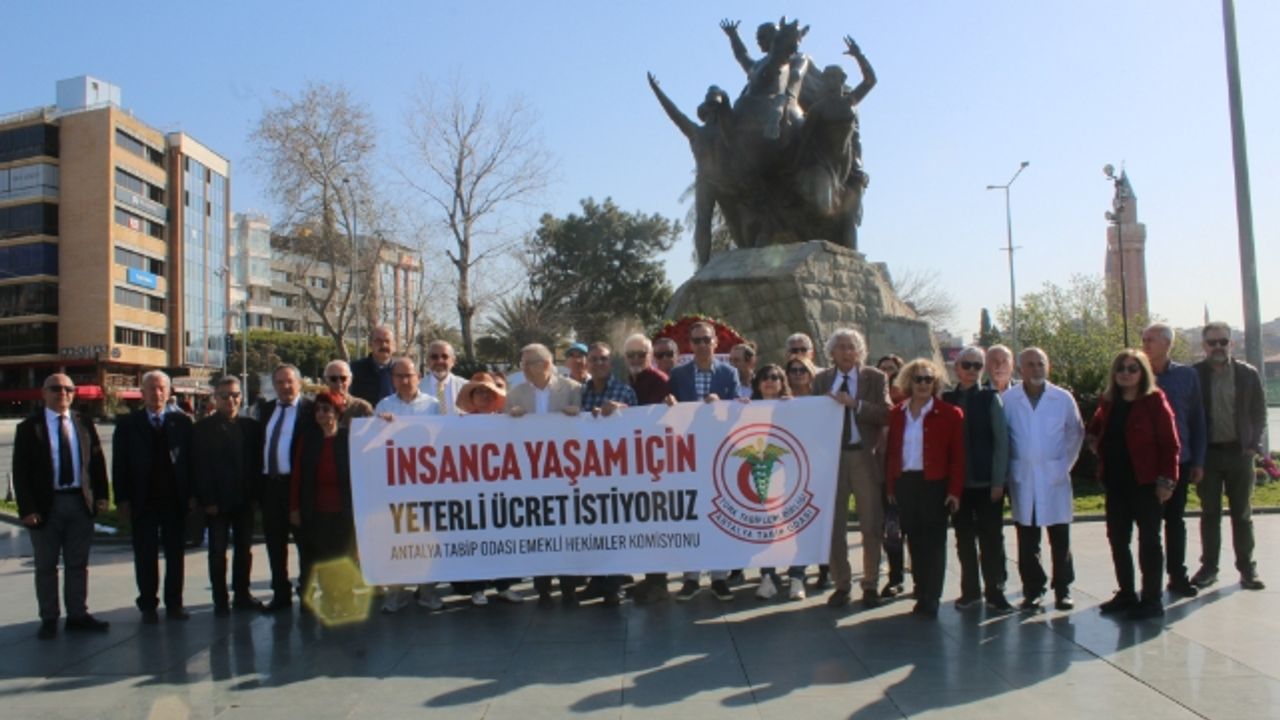 Antalya Tabip Odası Emekli Hekimler Komisyonu adına konuşan Hilmi Uysal da son zamanlarda parlamento komisyonlarındaki tartışmalardan meslektaşı oldukları milletvekillerinin dahi emekli hekimlerin aldığı maaşlardan haberdar olmadıklarını söyleyerek, şunları kaydetti: "Biz emekli hekimler, sadece emeklilik hakkı kazanıp emekli olanlar değil, yaş haddinden yani 67 yaşında emekli olanlar da dahil olmak üzere bugün yoksulluk sınırının altında maaş almaktayız. Hekimlerin emeklilik statüsü 4A, 4B ve 4C olmak üzere farklı kategorilerde emekli almaktayız. Emekli maaşı hesaplama sisteminin karmaşıklığı anlaşılmayı engellese de içimizde yaş haddinden emekli, 42 yıl hizmet verip profesör olarak, aynı süre devlet hastanesinde çalışıp emekli olan uzman cerrahta yoksulluk sınırı altında emekli maaş almaktadır. Hatta BAĞ-KUR veya sigortalı olarak emekli olup açlık sınırında emekli maaşı alan hekimler aramızdadır. İçimizde yoksulluk sınırının üstünde maaş alan bulunmamaktadır. Emekli maaşının hesaplanmasındaki cebir problemi gibi formüller, içinde yaşadığımız gerçeği gizleyememektedir."