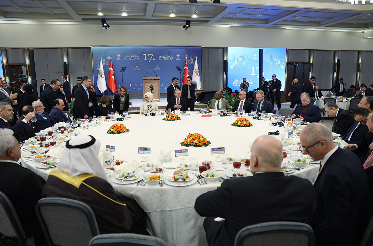 Cumhurbaşkanı Erdoğan, AK Parti Kongre Merkezi'nde gerçekleştirilen 17. Geleneksel Büyükelçiler İftar Programı'na katıldı. Burada konuşan Erdoğan, 11 ayın sultanı Ramazan-ı Şerif'in Müslümanlarla beraber tüm insanlığa barış, huzur ve esenlik getirmesini niyaz etti. Gazze'de 10 Ekim'de imzalanan mutabakata rağmen sahadaki insani trajedinin hala devam ettiğine dikkati çeken Erdoğan, "İnsani yardım girişlerinde sıkıntılar yaşanırken İsrail sistematik saldırılarıyla Gazze halkını terörize etmeyi sürdürüyor. Sadece son 5 ayda 640'ın üzerinde Gazzeli İsrail saldırılarında şehit oldu. İki bine yakın masum insan yaralandı. Geçen ayki arazi tesciline dair kararda olduğu gibi İsrail hükümetinin işgal ve istila politikasından Batı Şeria da payını alıyor. 7 Ekim 2023'ten bu yana Batı Şeria ve Doğu Kudüs'te bin 120'den fazla Filistinli katledilmiş, 12 bine yakın Filistinli ise yaralanmıştır. Ağır baskı altında tutulan Batı Şeria'da yargısız infazlar, işgaller, yıkımlar ve zorla yerinden edilmeler artarak devam ediyor. İsrail, uluslararası toplumun dikkatinin Gazze'den başka yerlere kaymasını fırsat bilerek iki devletli çözüm yolunu tamamen dinamitleme peşindedir. Netanyahu yönetimi 10 Ekim'de imzalanan deklarasyondan bugüne kadar yürüttüğü hukuk dışı ve yayılmacı politikalarla barış istemediğini, çözümden yana olmadığını bir kez daha göstermiştir. Türkiye dün olduğu gibi bugün de kardeş Filistin halkının yanındadır. Gazzeli mazlumlara maddi manevi tüm desteğini vermeye devam edecektir" ifadelerini kullandı.