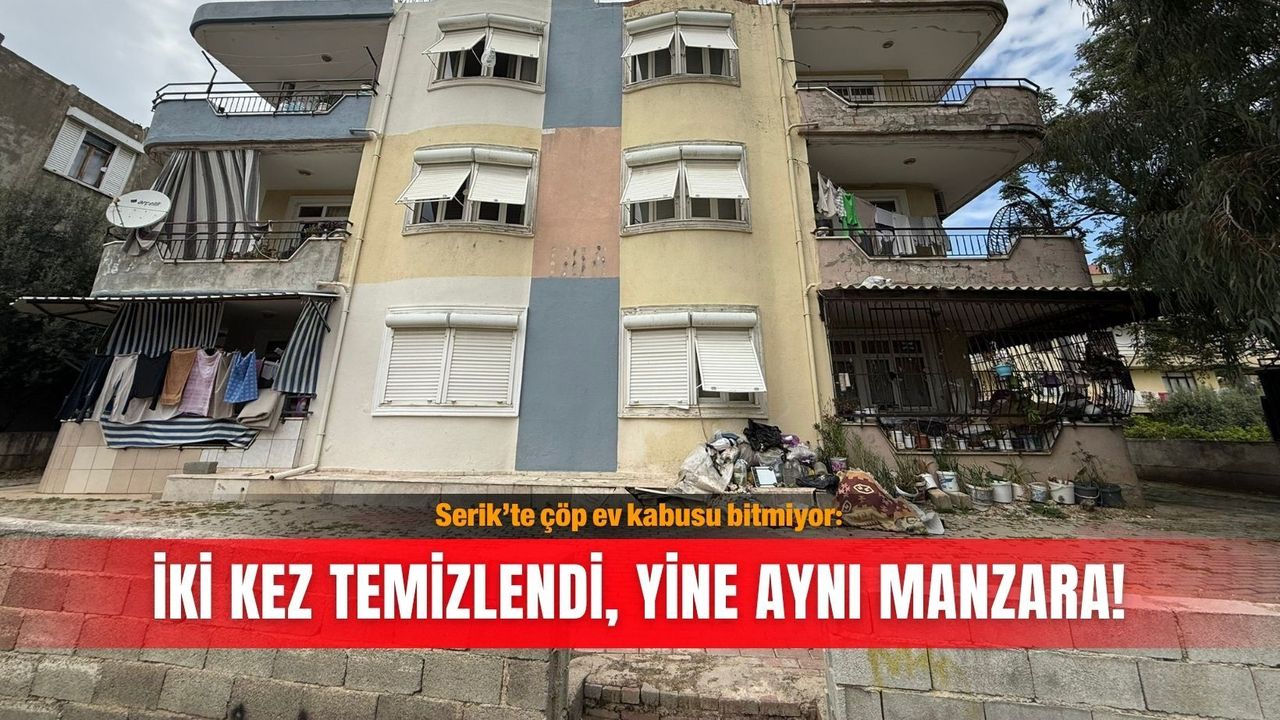 Vatandaşların şikayeti üzerine Serik Belediyesi zabıta ve temizlik işleri ekipleri, apartman bahçesinde bulunan 2 kamyon çöpü toplayarak temizlik çalışması yaptı. Apartman sakinleri, böcekler nedeniyle her gece evlerinde nöbet tutup, yatak çarşaflarını defalarca çırpıp yeniden sermek zorunda kaldıklarını belirtti. Apartmanın bahçesi olduğu için tercih ettikleri evde fare ve hamam böcekleri korkusuyla çocuklarını yalnız dışarı çıkaramadıklarını belirten apartman sakinleri, çocukların psikolojisini ve halk sağlığını tehdit eden bu "çöp evin" bir an önce temizlenmesi için konuyu mahkemeye taşıdı.