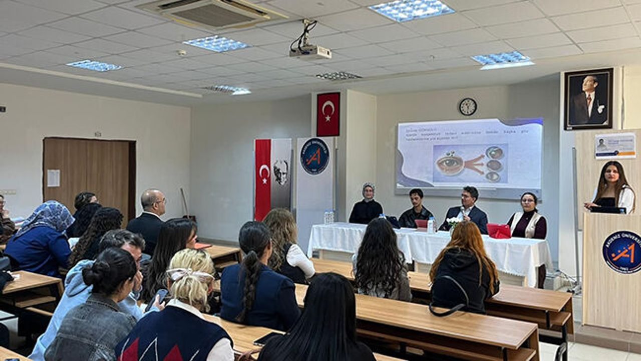 Optisyenlik Programı müfredatında yer alan TDP 34 Toplumsal Duyarlılık ve Katkı dersi kapsamında Göz Sağlığı ve Doğru Görme Gereci Seçimi ile Kullanımı Farkındalık Projesi semineri proje sözcüsü Deniz Oğuz ve toplumsal duyarlılık ve katkı dersi öğrencilerinin katkılarıyla organize edildi. Proje danışmanı öğretim görevlisi Ayşe Yadikar Habalı tarafından yürütülen seminere davetli konuşmacı olarak Kepez Devlet Hastanesi göz hekimi Uzman Dr. Şeref İstek katıldı. Dr. İstek, göz sağlığı ile ilgili doğru bilinen yanlışlar, önleyici yaklaşımlarla göz sağlığının korunması, göz sağlığı ve beslenme ilişkisi, sık karşılaşılan görme bozuklukları ve göz hastalıkları, belirtiler ve erken teşhisin önemine dikkati çekti.