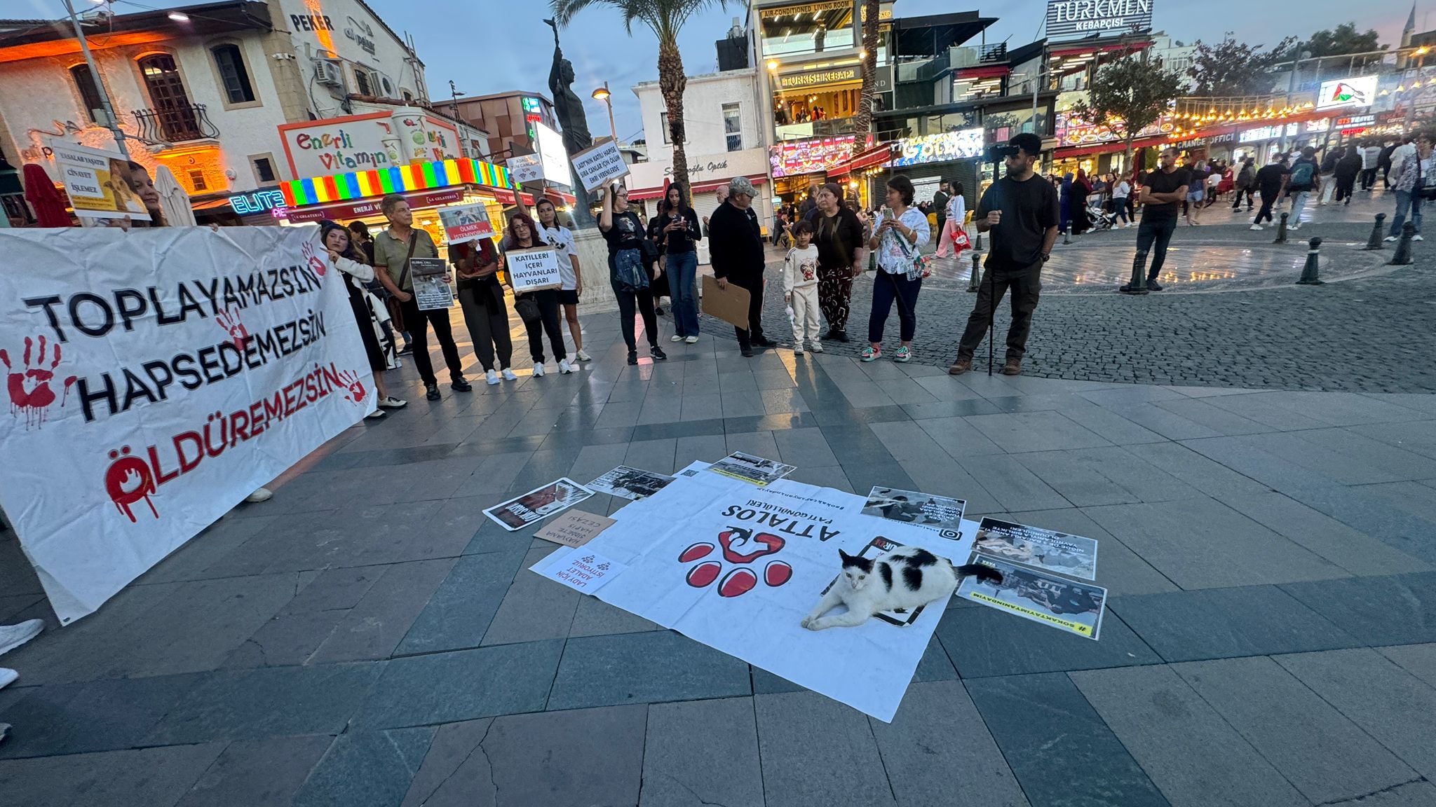 Attalos Pati Gönüllüleri, Ankara Valiliği'nde alınan ‘kamusal alanlarda başıboş köpeklerin beslenmesinin yasaklanması’ kararına ve Antalya'daki hayvan barınaklarında yaşandığı iddia edilen kötü şartlar ve ölümlere tepki göstermek amacıyla Attalos Meydanı'nda bir araya geldi. Grup adına basın açıklamasını okuyan Özlem Başargil, ülkedeki hayvan hakları ihlallerine ve yaklaşan yeni yasa tekliflerine karşı sert uyarılarda bulundu. Konuşmasına Antalya'da yaşanan dramatik olaylarla başlayan Başargil, Sarısu ve Çamlıbel mahallelerinde çok sayıda köpeğin yüksek dozda anesteziden dolayı hayatlarını kaybettiğini ileri sürerek yerel yönetimleri eleştirdi. Özlem Başargil, “Antalya Büyükşehir Belediyesi'nin bu taşımaları, canlara mal oluyor. Mahallelinin sevdiği köpekler neden kayıp? Neden müdahale edilmedi? Sorumlular kim, kimler ceza alacak? Biz, köpeklerin yaşamasını, yaşam hakkını talep ediyoruz. Köpeklerin barınakları yaşam hakkını alıyor, ancak yaşam hakkı bedellerini ödeyemiyor. Aksu barınağı yıllardır çözülemeyen bir problem. Barınakların diğer yerlerdeki gıdaları alınmış, kamuya açık olması gereken alanlar kalmıştır. Yetkililerden bu konu hakkında cevap bekliyoruz” dedi.