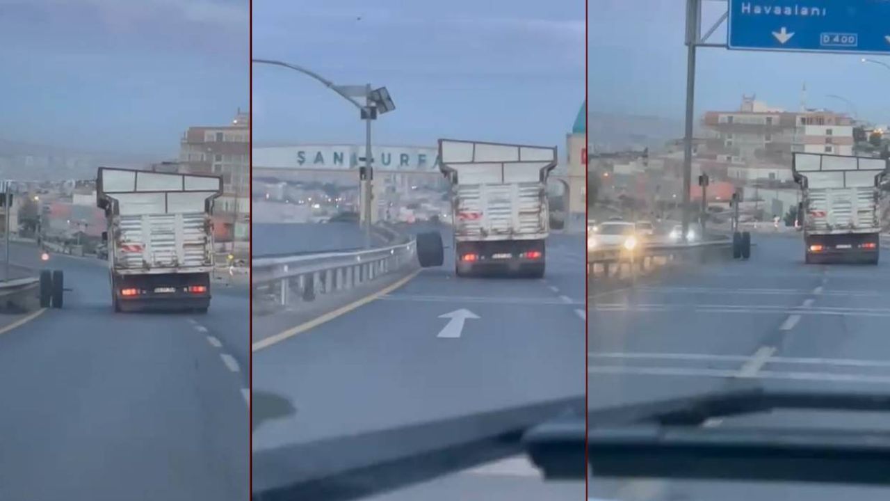 Şanlıurfa’da seyir halindeki bir kamyonun dingili koptu. Yoldan ayrılan tekerlekler yaklaşık 1 kilometre boyunca ilerlerken, o anlar cep telefonu kamerasıyla görüntülendi.