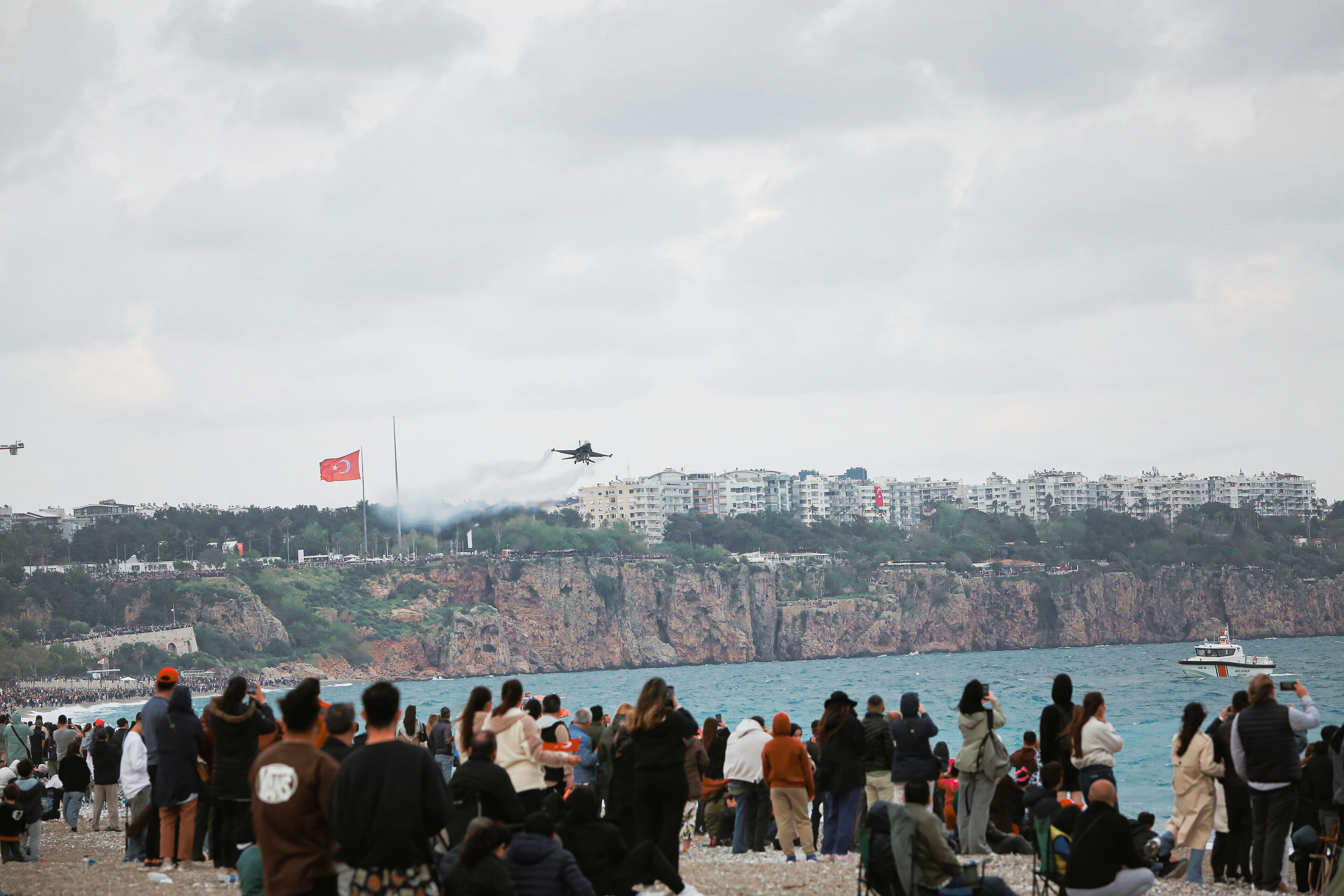 Konyaaltı Sahili üzerinde gerçekleştirilen gösteri, kentin dört bir yanından gelen vatandaşların yoğun ilgisiyle karşılaştı. Sahil bandı boyunca yürüyüş yolları dolarken, deniz üzerindeki tekneler ve yatlar da gökyüzündeki görsel şölene eşlik etti. Gün boyu süren bayram coşkusu, SOLOTÜRK’ün performansıyla zirveye taşındı.