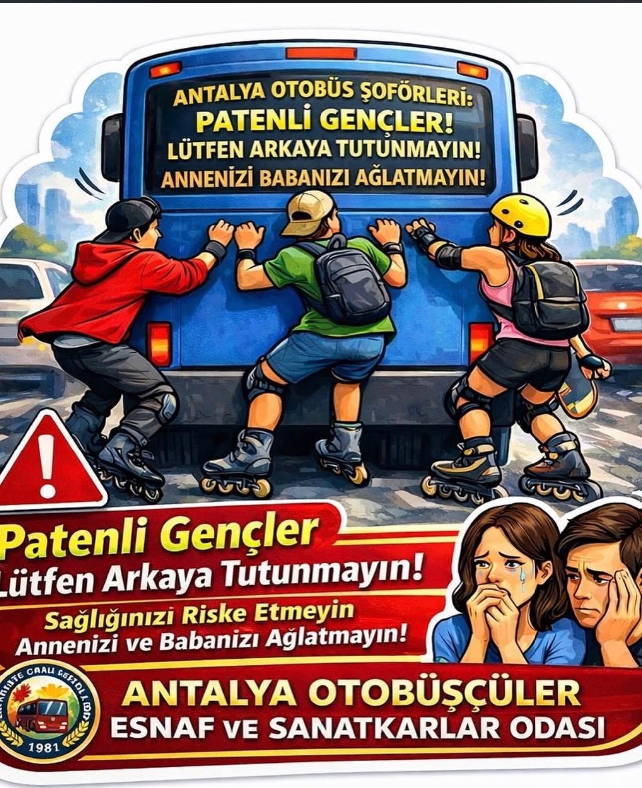 Antalya’da tüm uyarılara rağmen hız kesmeyen ‘patenli gençlerin araç arkasına tutunma’ çılgınlığı, toplu taşıma şoförlerini ve aileleri korkutuyor. Antalya Otobüsçüler Odası Başkanı Yasin Arslan, facianın eşiğinden dönülen görüntüler sonrası sessizliğini bozarak, anne ve babaları göreve çağırdı. Turizm şehri Antalya’nın işlek caddelerinde, hayatlarını hiçe sayarak belediye otobüsleri ve kamyonların arkasına tutunan patenli gençler, trafiği altüst etmeye devam ediyor. Defalarca yapılan uyarılara, kesilen cezalara ve yaşanan kazalara rağmen bu tehlikeli oyundan vazgeçmeyen gençler, hem kendi canlarını hem de sürücüleri büyük bir risk altında bırakıyor. Konuyla ilgili en net tepki, sahadaki en büyük mağdurlardan biri olan Antalya Otobüsçüler Odası Başkanı Yasin Arslan’dan geldi.