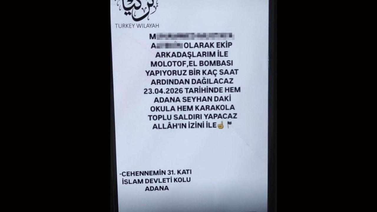 Edinilen bilgiye göre, M.M.A. isimli şahıs sosyal medya hesaplarında, "Hem okula hem de karakola saldırı yapacağız" şeklinde paylaşımlarda bulundu. Paylaşımların ardından Adana Emniyet Müdürlüğü Terörle Mücadele Şube Müdürlüğü ekipleri harekete geçti. Şüphelinin adresi belirlendi. TEM ekipleri adrese yaptığı operasyonla M.M.A.’yı gözaltına aldı. M.M.A. sorgulanmak üzere emniyete götürüldü.