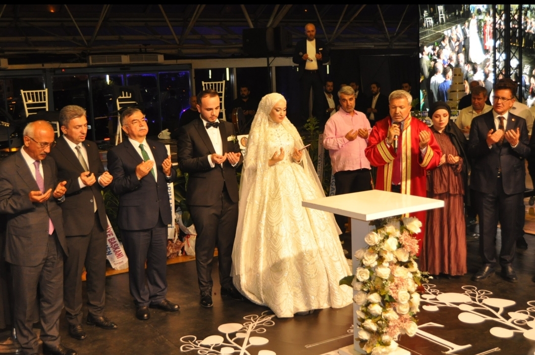 Evlilik cüzdanını geline teslim eden eski Bakan İsmet Yılmaz, konuşmasında ailenin toplumun temel taşı olduğunu vurgulayarak, genç çifte “iki cihan saadeti” diledi. Mutlulukları gözlerinden okunan Hüsna ve Taha çifti, davetlilerin alkışları arasında ilk danslarını yaparak yeni hayatlarına adım attı.