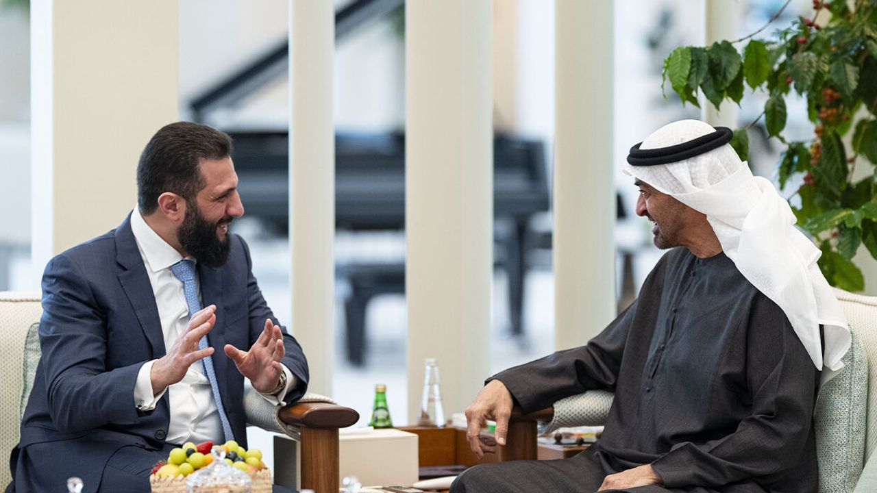 Suriye Devlet Başkanı Ahmed eş-Şara, Körfez ülkelerindeki temaslarını sürdürüyor. Eş-Şara, resmi temaslarda bulunmak üzere Birleşik Arap Emirlikleri’ne (BAE) geldi. Suriyeli lider ziyareti kapsamında BAE Devlet Başkanı Şeyh Muhammed bin Zayid Al Nahyan ile bir araya geldi. Eş-Şara görüşmeye ilişkin sosyal medya hesabından yaptığı açıklamada, Al Nahyan ile verimli bir görüşme gerçekleştirdiğini kaydetti. Suriye Devlet Başkanı, iki ülke arasında daha geniş ekonomik ortaklıklar kurulması ve kalkınma çabalarının desteklenmesi yoluyla ortak çalışma alanlarının genişletilmesi ile iş birliği fırsatlarının artırılması konularının ele alındığını belirtti.