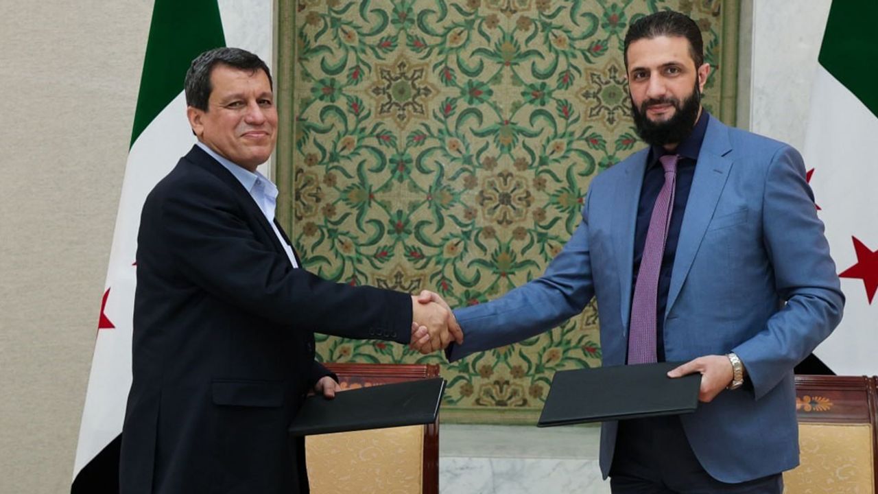 Suriye yönetiminin terör örgütü PKK/YPG'nin Suriye uzantısı Suriye Demokratik Güçleri (SDG) ile yaptığı entegrasyon görüşmeleri sonuç verdi. SDG, Şam yönetimi ile ateşkes ve entegrasyon konusunda kapsamlı bir anlaşmaya varıldığını açıkladı. Anlaşmaya göre terör unsurları ön hatlardan çekilecek, hükümet güçleri Haseke ve Kamışlı'nın merkezlerine konuşlandırılacak ve yerel güvenlik güçleriyle birleştirilecek.