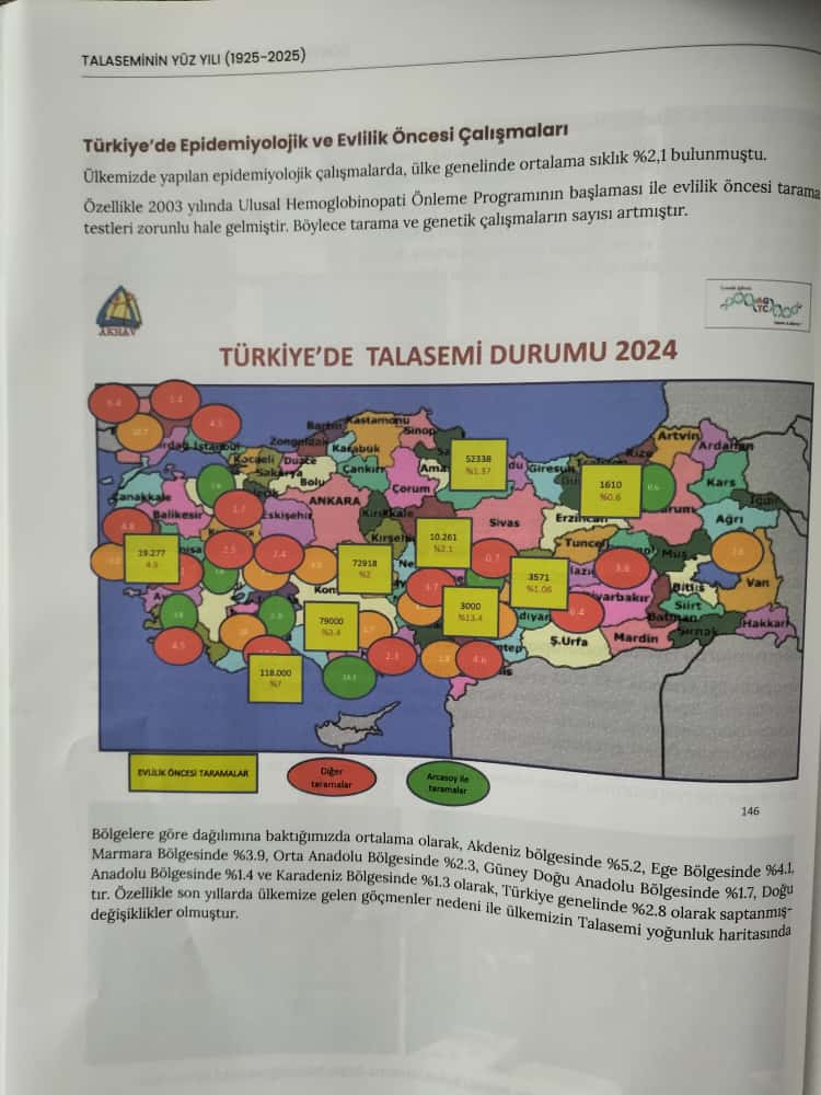 “Dünyada hastalığın önlenmesi konusunda ilk yasayı çıkaran ülke olarak, yönetmelik geç yayınlanmış olsa da hemoglobinopati önleme programı ile kısa sürede diğer Akdeniz ülkelerindeki önleme başarısı elde edilmiştir. Ülke çapında evlilik öncesi talasemi testinin uygulanması ile hem hastalık önlenmiş hem de ülkenin talasemi haritası güncellenmiştir. Talasemi ve hemoglobinopati konusunda tarama, genetik ve prenatal çalışmalar İstanbul’da Ankara, İzmir, Adana, Antalya gibi değişik illerde devam etti. Türkiye’deki en büyük çalışmalar Ankara ve Hacettepe Üniversitelerinde yapıldı. Antalya’da ise Ankara Üniversitesi Tıp Fakültesi olarak buraya geldik ve çalışmalarımıza başladık; Talasemi Merkezi’ni kurduk. Türkiye’de ilk Talasemi Derneği’ni Prof. Dr. Hüseyin Sipahioğlu hocamız kurdu.”