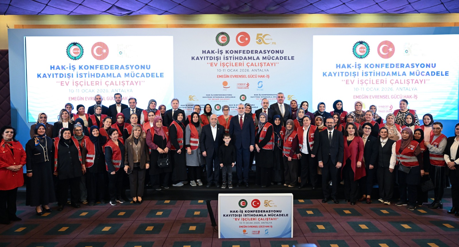 Antalya'da HAK-İŞ Konfederasyonu tarafından 'Kayıtdışı İstihdamla Mücadele Ev İşçileri' konulu çalıştay, Çalışma ve Sosyal Güvenlik Bakanı Vedat Işıkhan'ın katılımıyla gerçekleştirildi. Bir otelde düzenlenen program, saat 09.30'da saygı duruşu ve İstiklal Marşı'nın okunmasıyla başladı. Açılış bölümünde HAK-İŞ Konfederasyonu'nun 50. Yıl Filmi gösterildi. Ardından Hizmet-İş Sendikası Komitesi Başkanı Hatice Ayhan ile HAK-İŞ Kadın Komitesi Başkanı Fatma Zengin konuşmalarını yaptı.