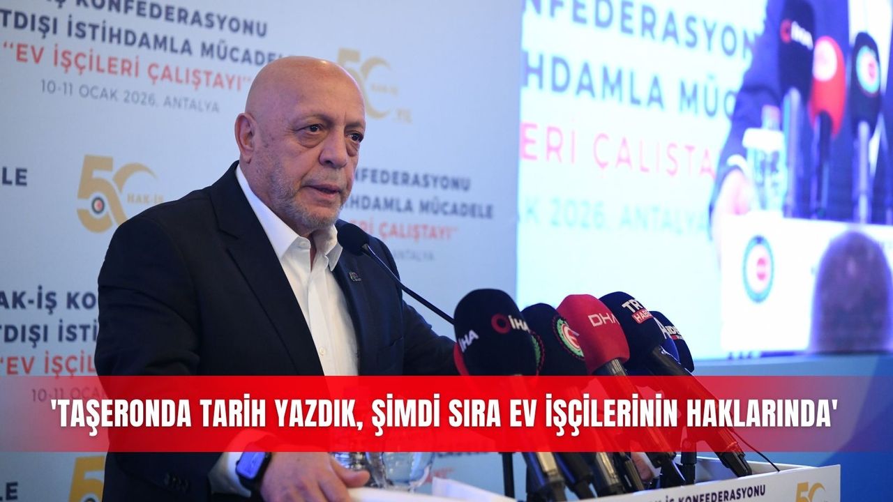 Bugün ev işçilerinin sendikal örgütlenmesi, İş Kanunu kapsamına alınması, sosyal güvenlik sisteminden tam olarak yararlanması ve toplu sözleşme haklarına kavuşması için yürüttükleri mücadelede de aynı kararlılığı sürdürdüklerini belirten Arslan, 'Kayıt dışı istihdamın ortadan kaldırılması için kapsamlı bir yaklaşım sergiliyoruz. Elbette her zaman olduğu gibi önce mevzuatı, sonra konfederasyonumuzu, ardından işçileri ikna etmekte zorluklar yaşadık. Taşeron mücadelesinde olduğu gibi, 'Bu yapılabilir mi?' diye soranlara karşı kararlılıkla şunu anlattık: Bu insanların bizden alacakları var ve mücadele etmek zorundayız' şeklinde konuştu.