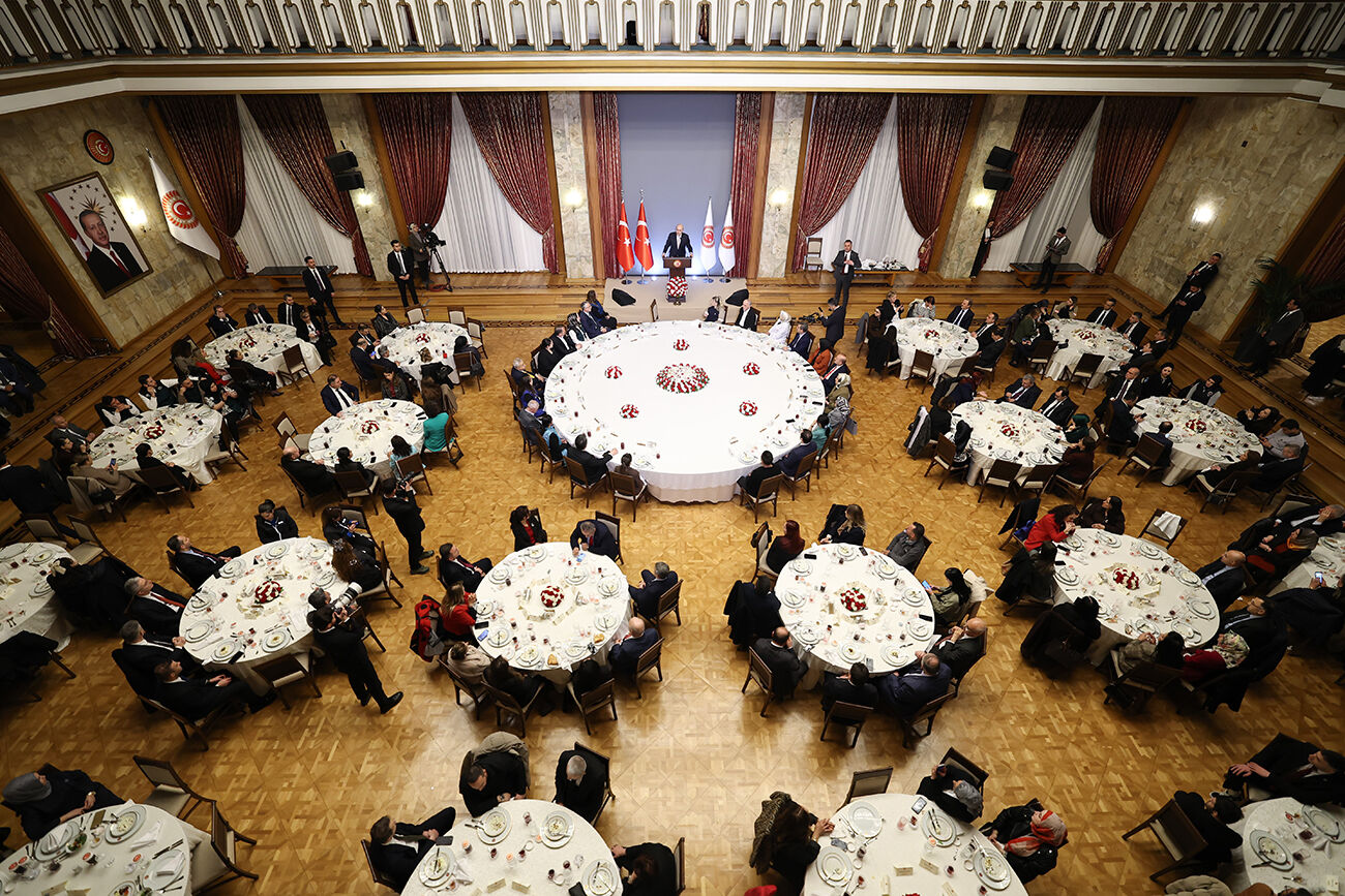TBMM Başkanı Kurtulmuş, TBMM Tören Salonu'nda düzenlenen "Emekçilerle İftar Programı"na katıldı. Kurtulmuş, işçi ve memur sendikalarının temsilcileri ve işçilerle Türkiye demokrasisinin kalbi, milli iradenin tecelligahı TBMM'deki iftar sofrasında bir arada bulunmaktan duyduğu memnuniyeti dile getirerek, "Bu mübarek ramazan akşamında Allah oruçlarımızı, dualarımızı, niyazlarımızı, dileklerimizi kabul etsin. İnşallah sağlık afiyet içerisinde sevdiklerimizle beraber nice ramazanlara ulaşmayı hayırlısıyla her birimize nasip etsin" ifadesini kullandı.