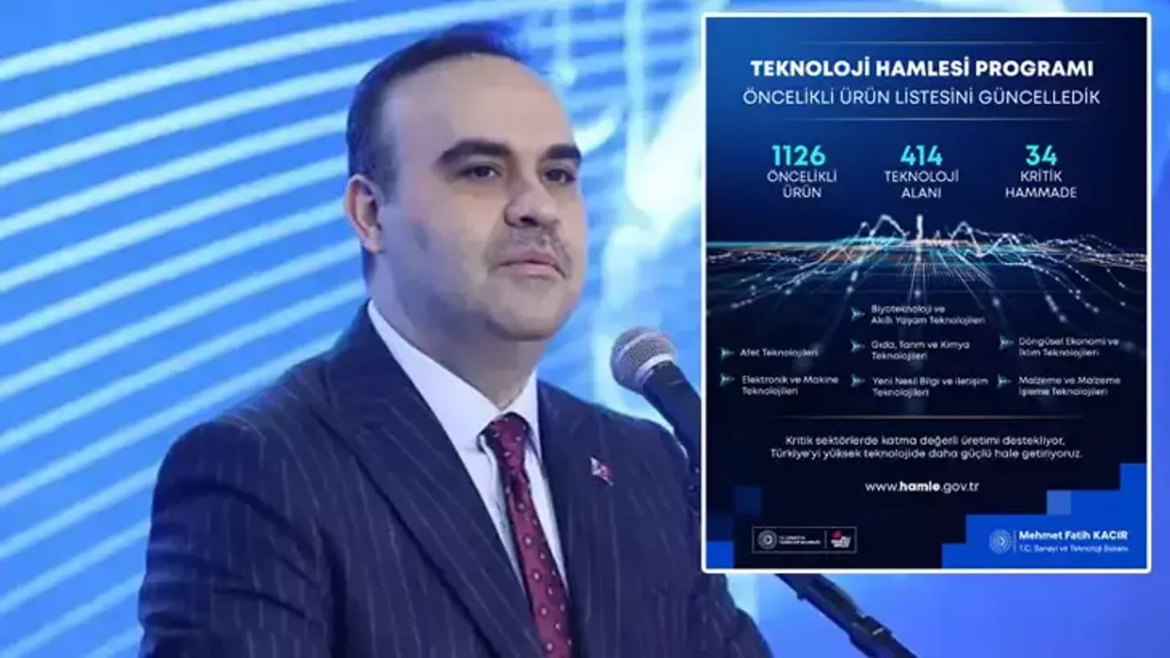 Bu hedef doğrultusunda öncelikli ürün listesini ile teknoloji alanlarının güncellendiğini belirten Kacır, yeni dönemde 1126 öncelikli ürün, 414 teknoloji alanı ve 34 kritik ham maddenin destek kapsamına alındığını vurguladı.