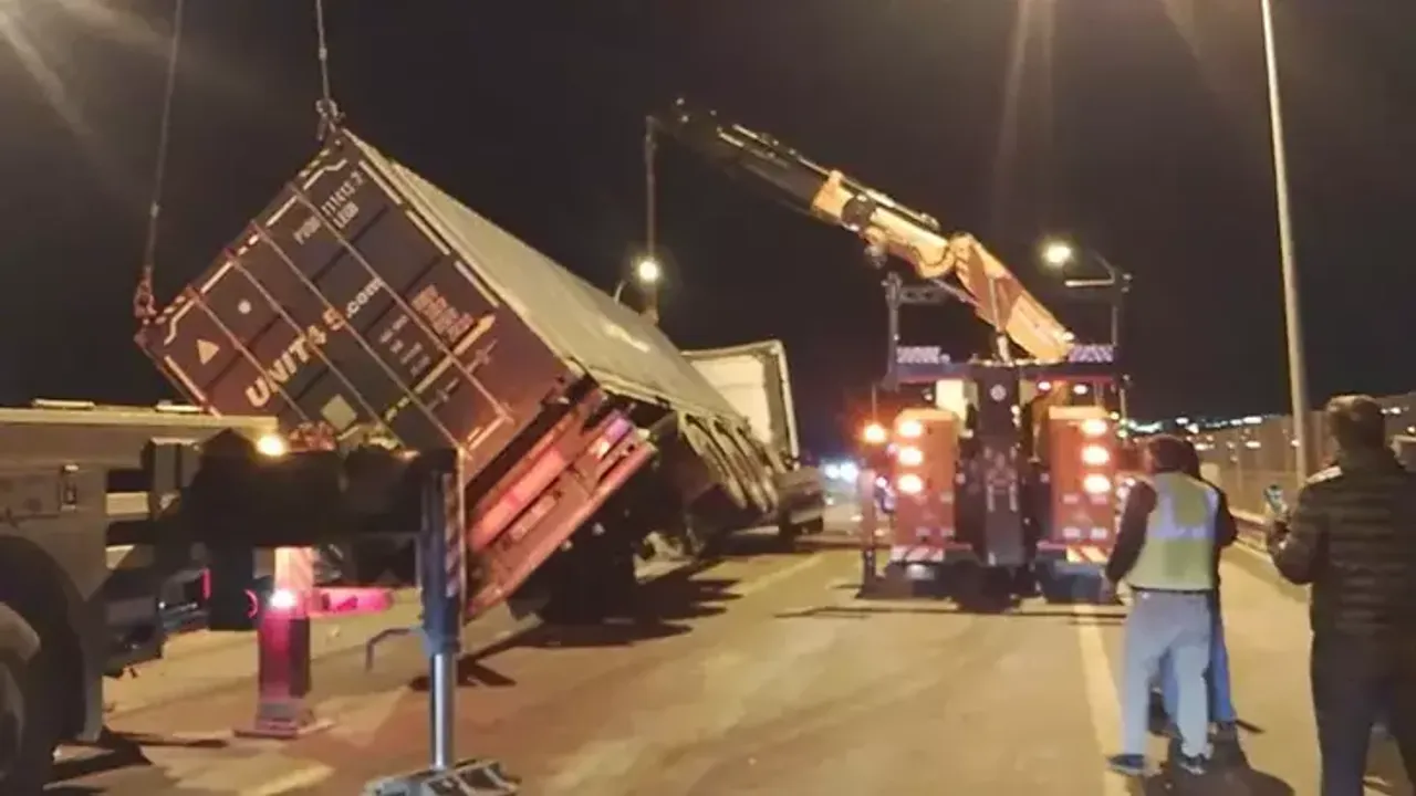 Kaza, saat 20 Şubat Cuma akşamı 21.00 sıralarında TEM otoyolu Büyükçekmece Mevkii'nde meydana geldi. Edinilen bilgiye göre, şoförünün direksiyon hakimiyetini kaybettiği M.O idaresindeki 34 DPD 634 plakalı konteyner yüklü TIR devrildi.
