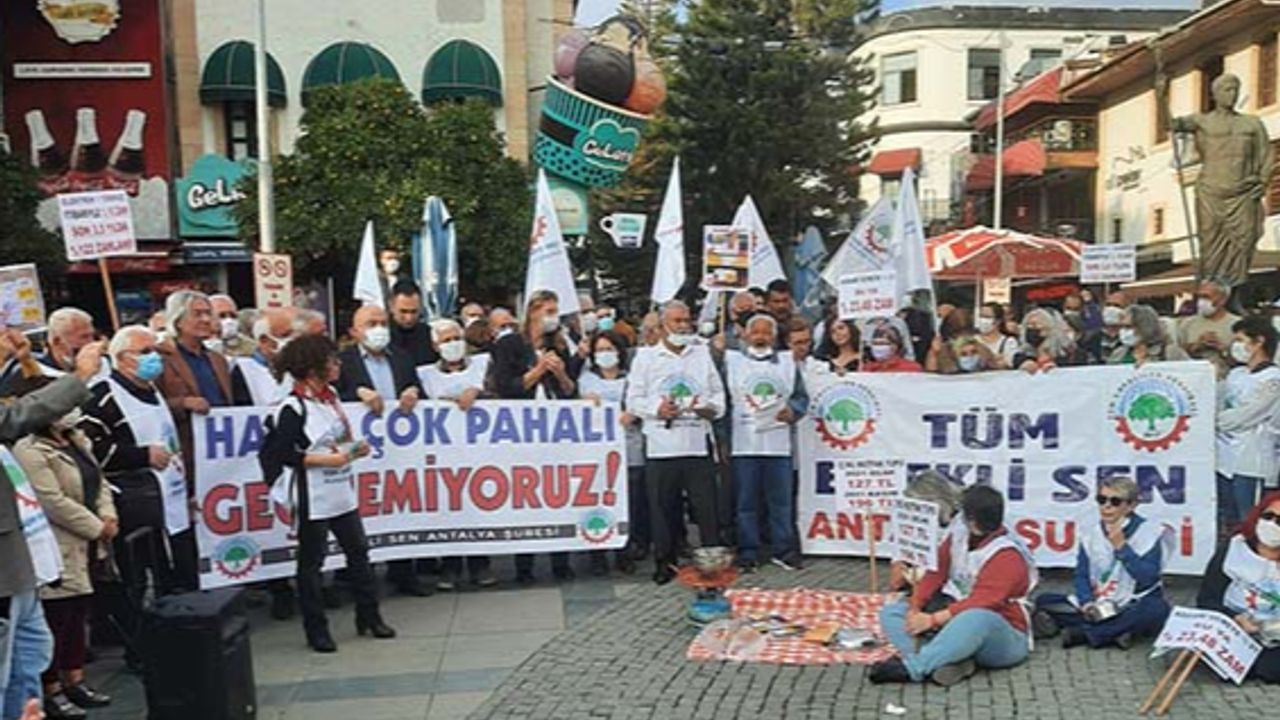 İğneden ipliğe her ay değil, her hafta zam geldiğinin altını çizen Tüm Emekli Sen Antalya Şube Başkanı Mustafa Ayar, "Zamlar bıktırdı. Artık takip edemiyoruz. Enflasyonu yüzde 20'nin biraz altında göstererek kimseyi kandıramazsınız. Zaten siz de biliyorsunuz ki, enflasyon yıllık bazda en az yüzde 50 civarında. Ama emekliye verdiğiniz artış, sizin açıkladığınız enflasyonun da altında, en düşük emekli maaşı bugün için 5200 liradan az olmamalıdır. Kendileri yüz bin liraya varan maaşlar alıyorlar, yetmiyor. 3-5 yerde maaş alanları var, bizleri ise açlığa mahkum ediyorlar. İktidar sesimizi duymamakta ısrar ediyor. Şu an bütçe görüşmeleri yapılıyor. Emeklilere bu bütçeden pay istiyoruz" şeklinde konuştu.