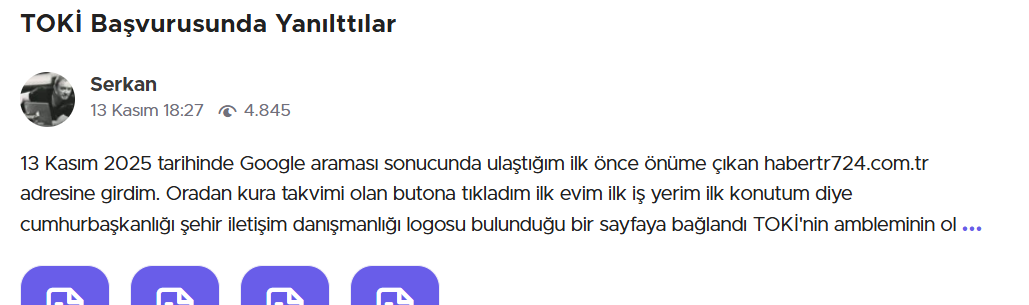 Siber güvenlik uzmanları, kamu projeleri gibi yüksek ilginin olduğu dönemlerde dolandırıcılık girişimlerinin arttığını hatırlatarak şu uyarılarda bulunuyor: “Resmi işlemler için sadece TOKİ’nin kendi alan adını (toki.gov.tr) kullanın. Google reklamı yoluyla açılan bağlantılara karşı dikkatli olun. TOKİ’den hiçbir zaman ödeme, kart bilgisi veya özel doğrulama bilgisi istenmez. Şüpheli durumlarda e-Devlet’ten doğrulama yapılmalı.”