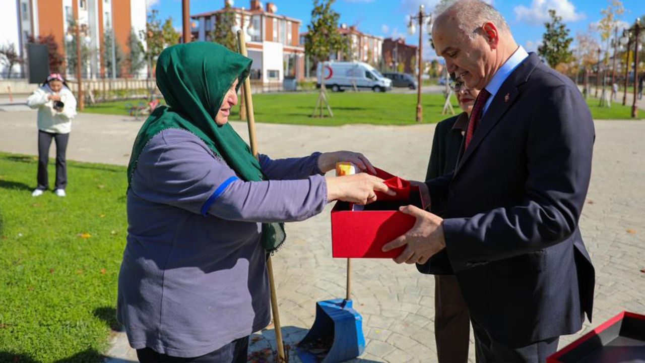 Başkan Özlü, Rukiye Tuna’ya Türk bayrağı hediye ederken, Tuna videoda olduğu gibi yine eldivenlerini çıkararak bayrağı teslim aldı. Duygusal anların yaşandığı buluşmada, Tuna bayrağı öpüp koklayarak "Torunumun çeyizine koyacağım bunu. Allah razı olsun" ifadelerini kullandı. Özlü, ayrıca Tuna’ya kahve fincanı hediye ederek örnek davranışı nedeniyle bir maaş ikramiye verileceğini açıkladı. Ancak Tuna, "Bana bayrak yeter" sözleriyle mütevazı bir yanıt verdi.