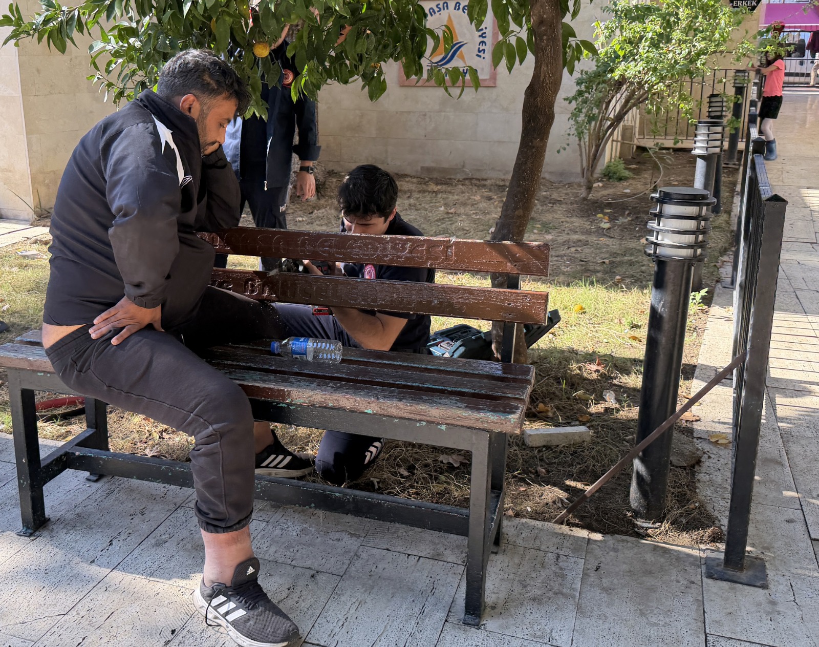 Olay, saat 10.30 sıralarında Muratpaşa ilçesi Kızılsaray Mahallesi'nde bulunan Muratpaşa Camisi'nin avlusunda meydana geldi. Uyuyan Erkan Seymen, sol bacağını bankın arasına soktu. Uyandığında durumu fark eden Seymen, bir süre bekledi. Bacağını kurtaramayınca Seymen, bir süre sonra cami avlusunda bulunan vatandaşlardan yardım istedi. Seymen kurtarılamayınca durum, 112 Acil Çağrı Merkezi'ne bildirildi. İhbarla olay yerine itfaiye ekibi sevk edildi. Kısa sürede gelen itfaiye ekibi, Seymen'in bacağını kurtarabilmek için elektrikli testereyle bankın tahta kısmını kesti. Yaklaşık 3 saat boyunca bankta beklediği öğrenilen Seymen, bulunduğu yerden kurtarıldı. Durumu iyi olan Seymen daha sonra bölgeden ayrıldı.